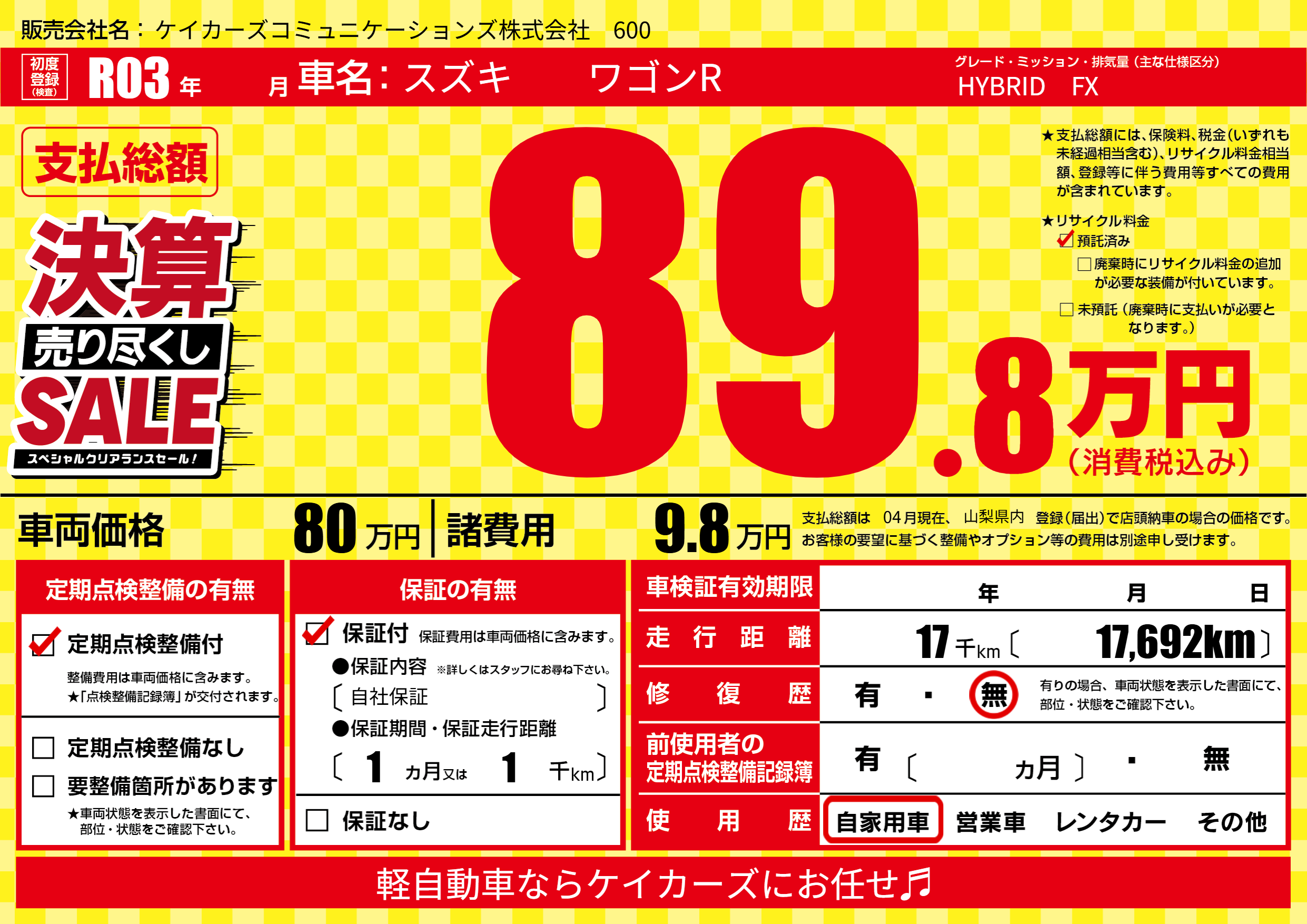 | 定期点検整備 | 定期点検整備あり | ||