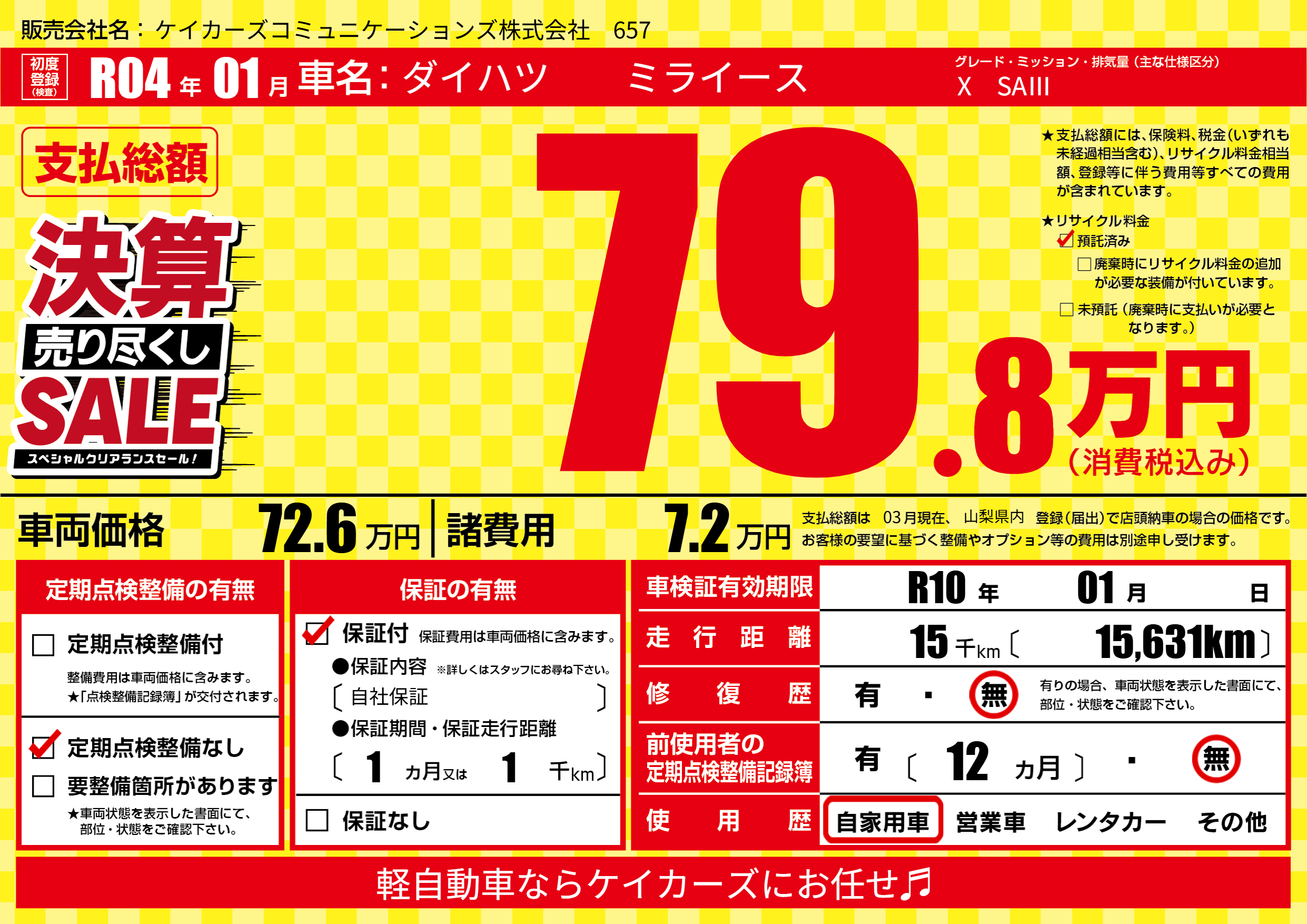 | 定期点検整備 | 定期点検整備なし | ||