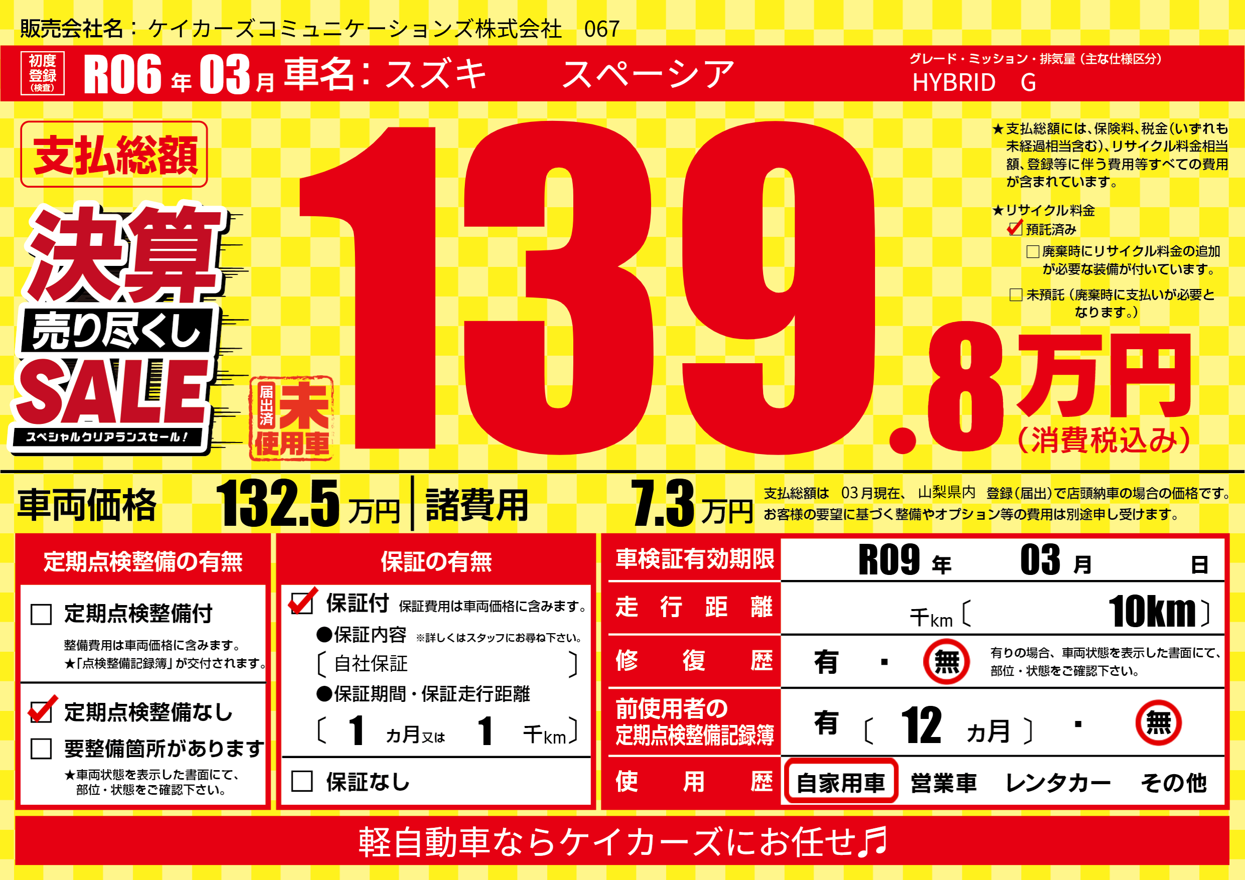 なし | 車検制限 | R09年03月---月 |