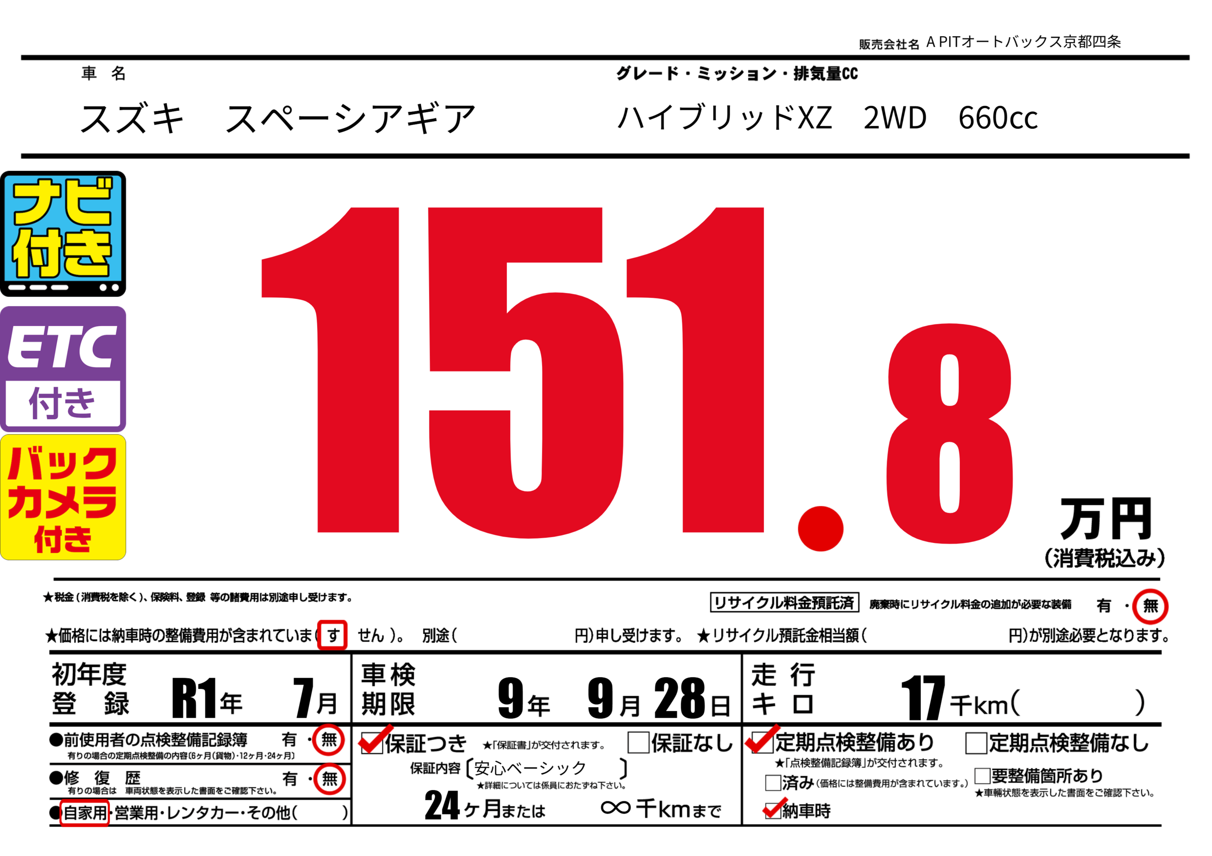 あり | 車検制限 | 9年9月28月 |