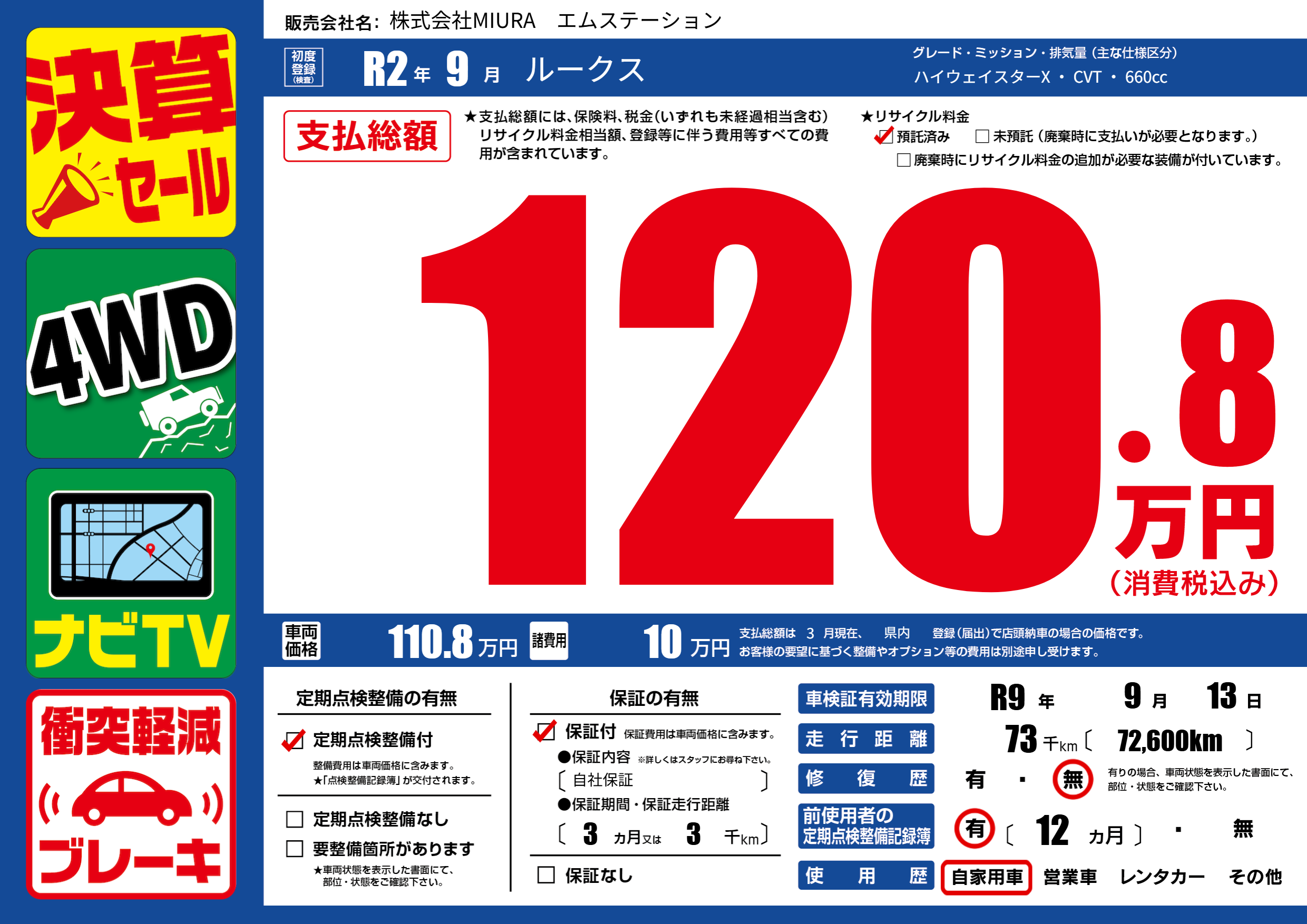 なし | 車検制限 | R9年9月13月 |