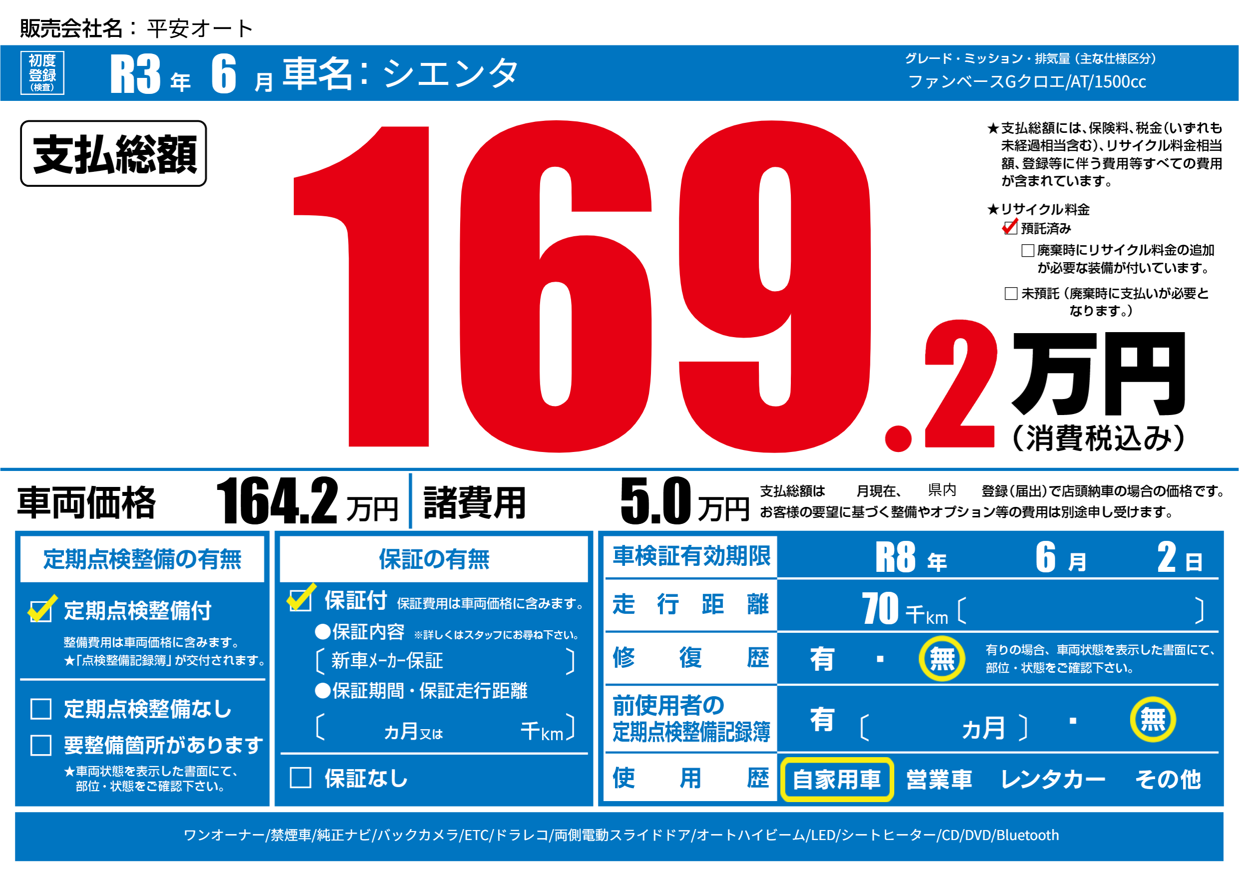 なし | 車検制限 | R8年6月2月 |