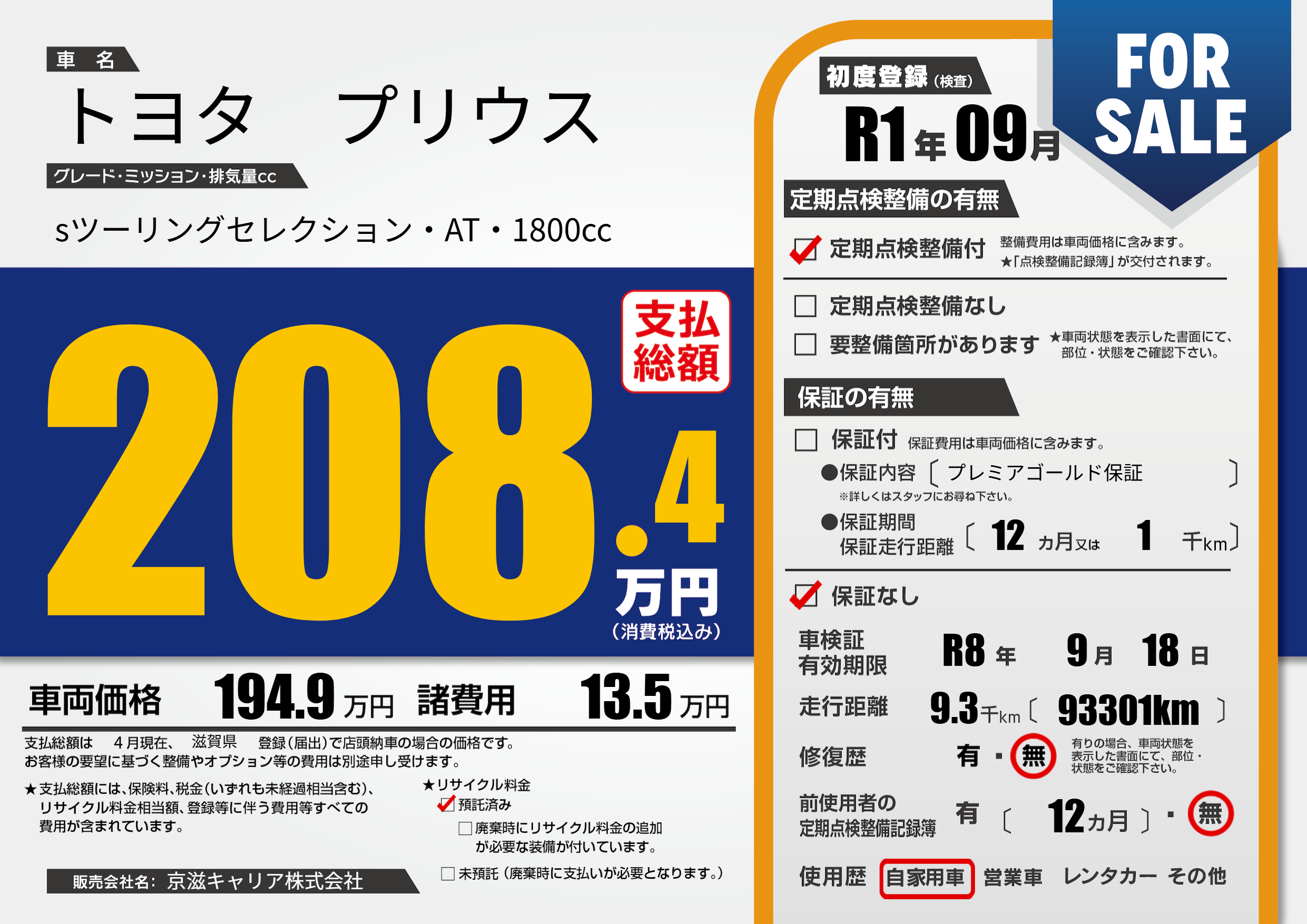 | 定期点検整備 | 定期点検整備あり | ||