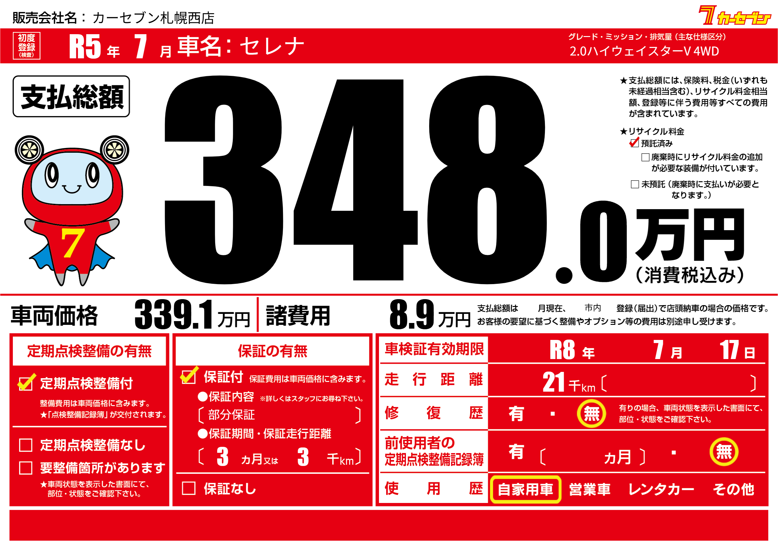 なし | 車検制限 | R8年7月17月 |