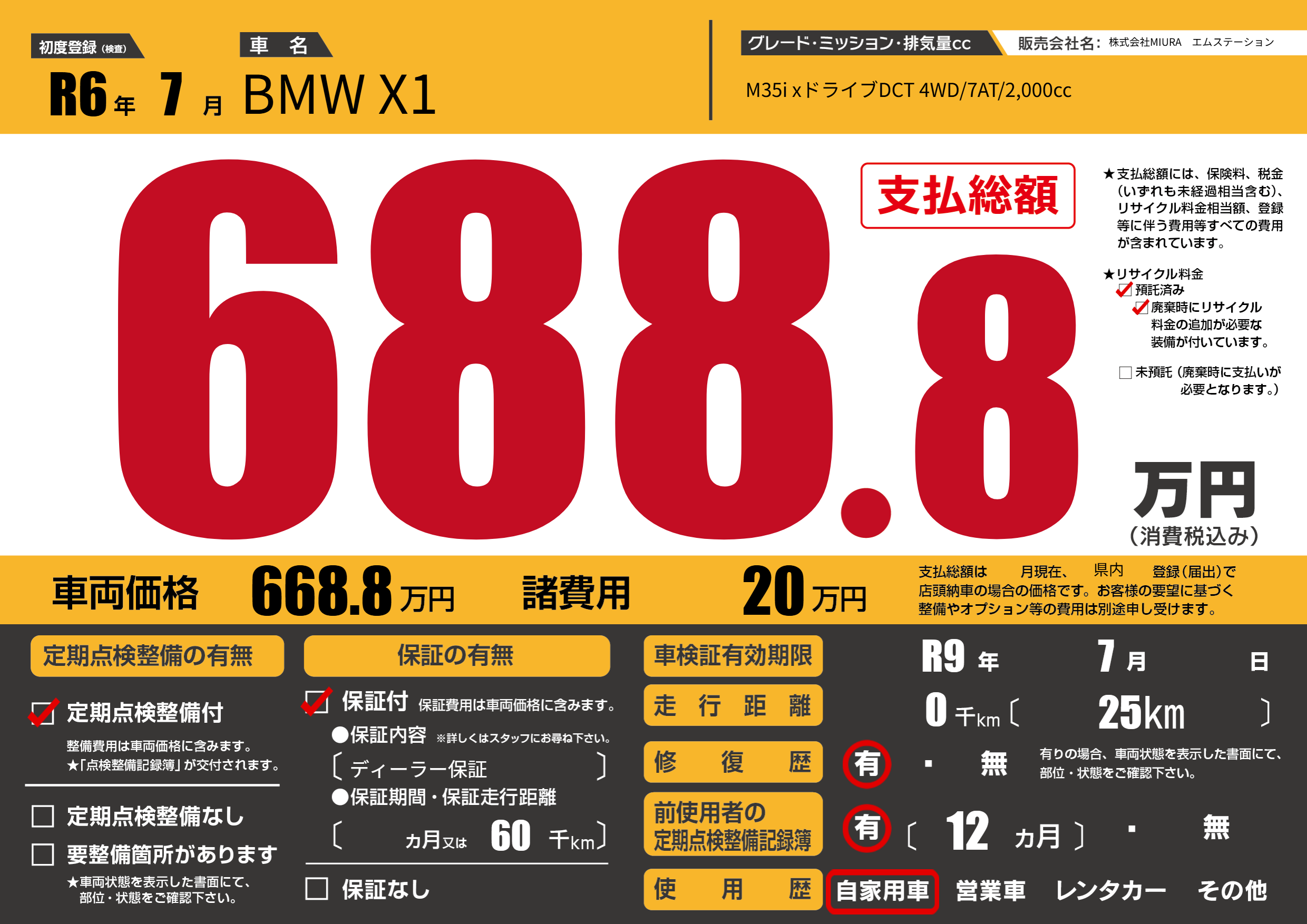 | 車検制限 | R9年 7月 - 日 | ||