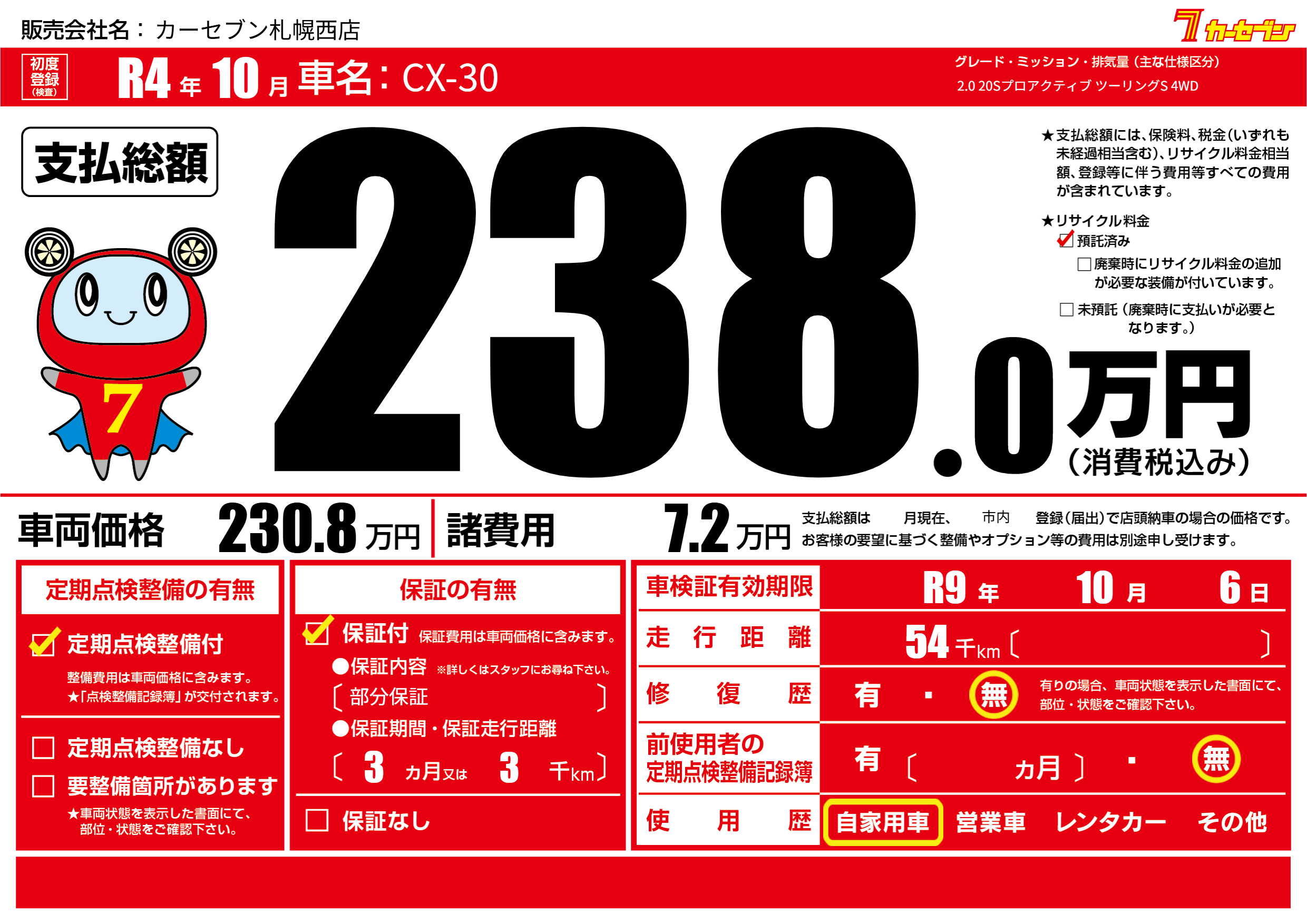 | 車検制限 | R9年 10月 6日 | ||