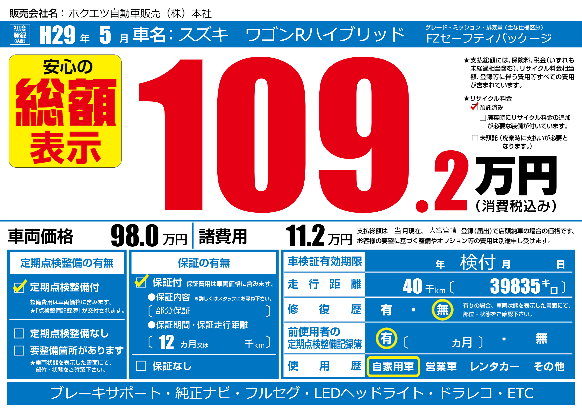 | 定期点検整備 | 定期点検整備あり | ||