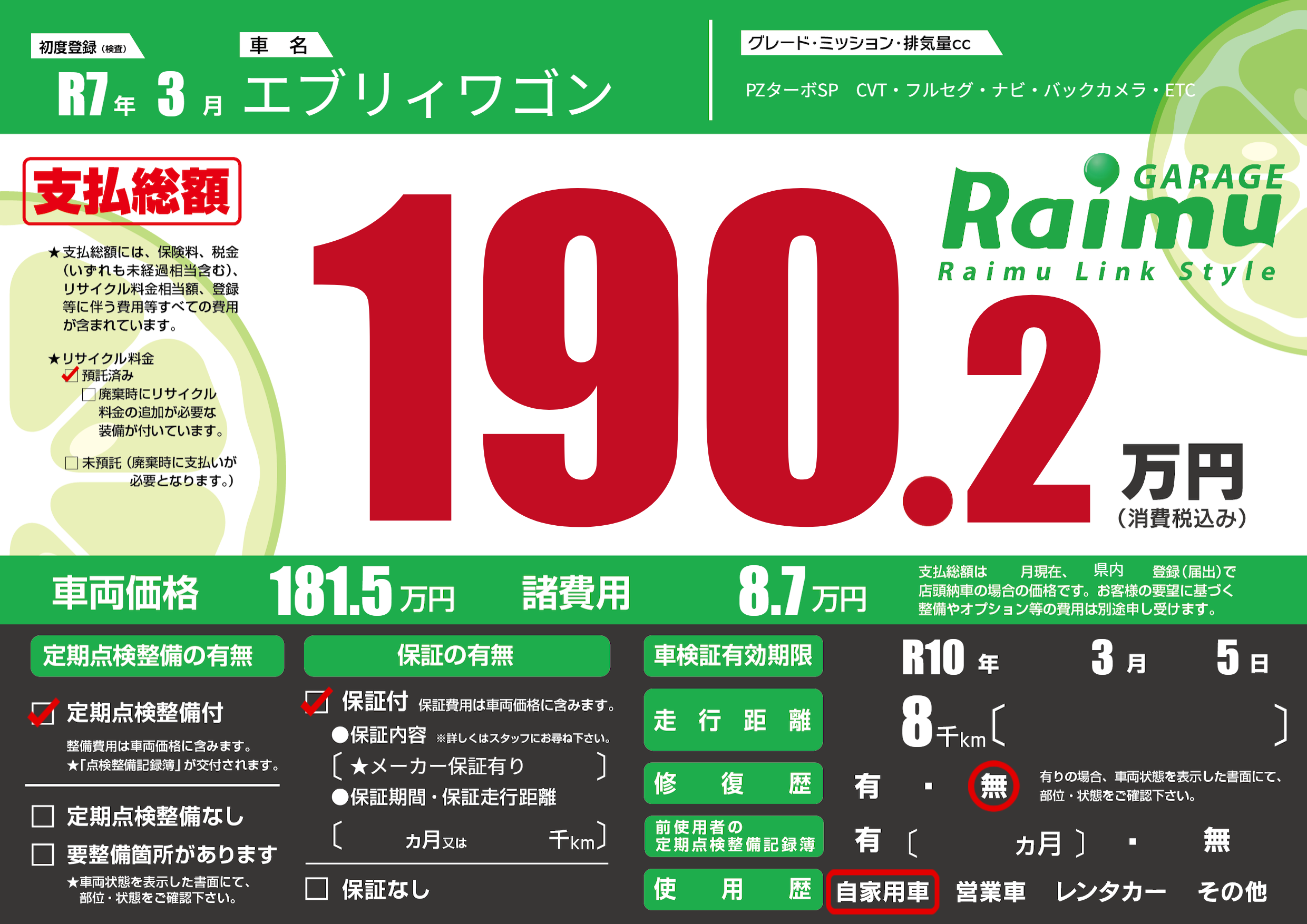 なし | 車検制限 | R10年3月5月 |