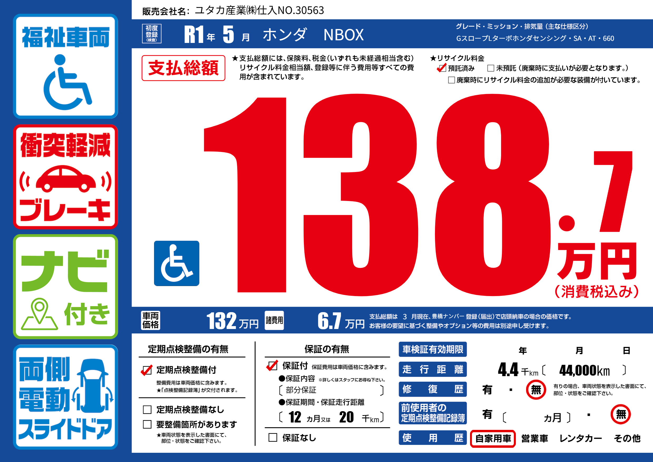 | 初年度登録 | R1年5月 | ||