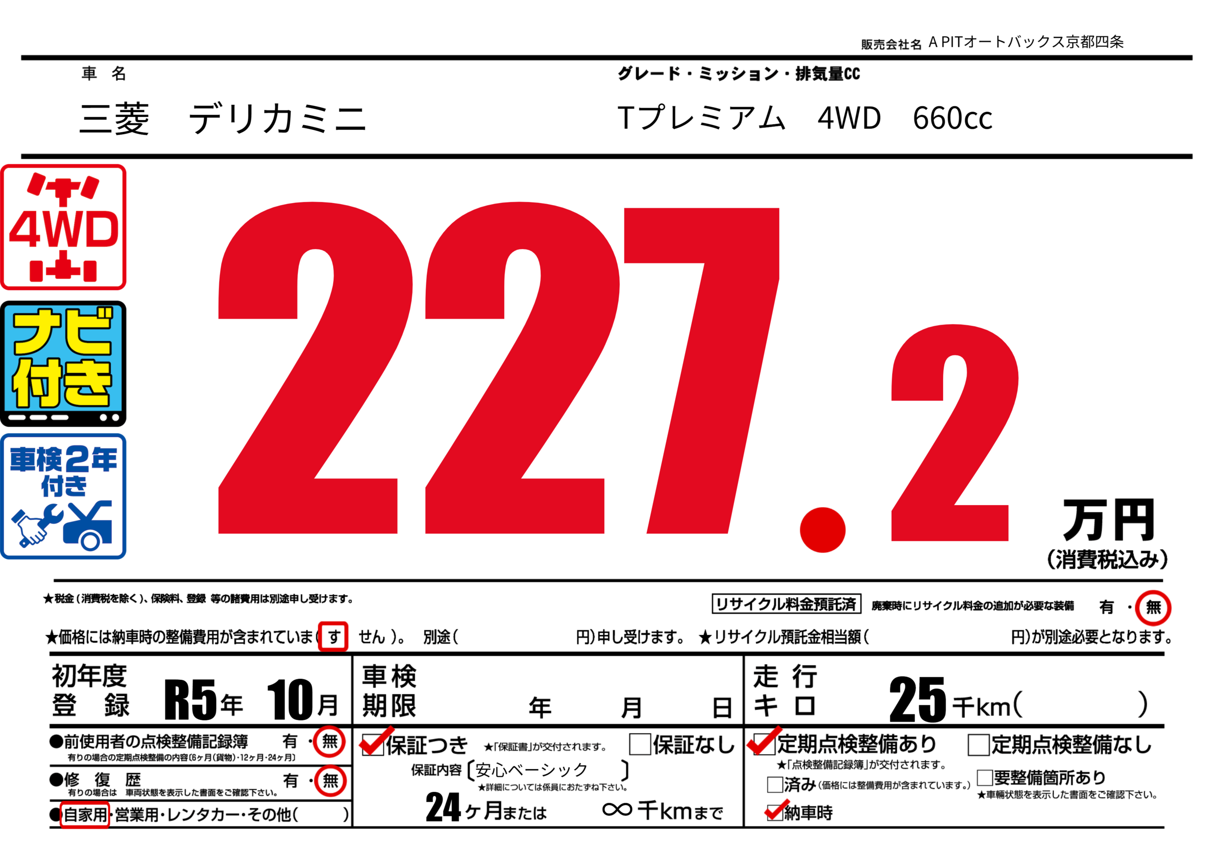 | 定期点検整備 | 定期点検整備あり 納車時あり | ||