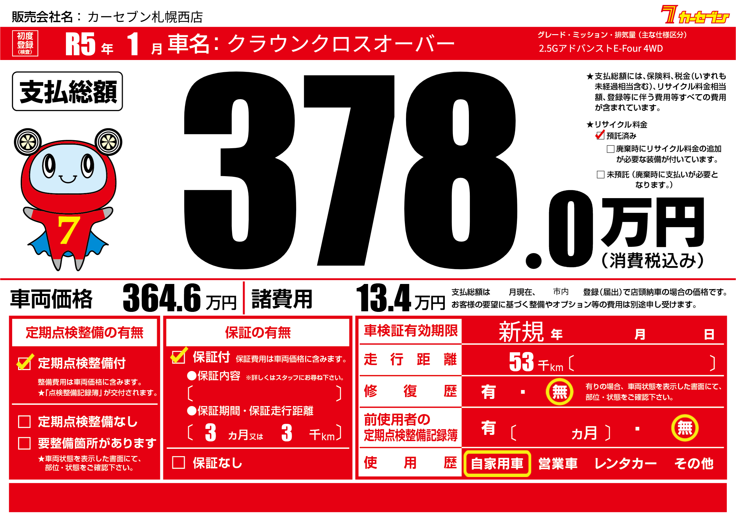 | 走行キロ | 5.3万km | 初年度登録 | R5年1月 |