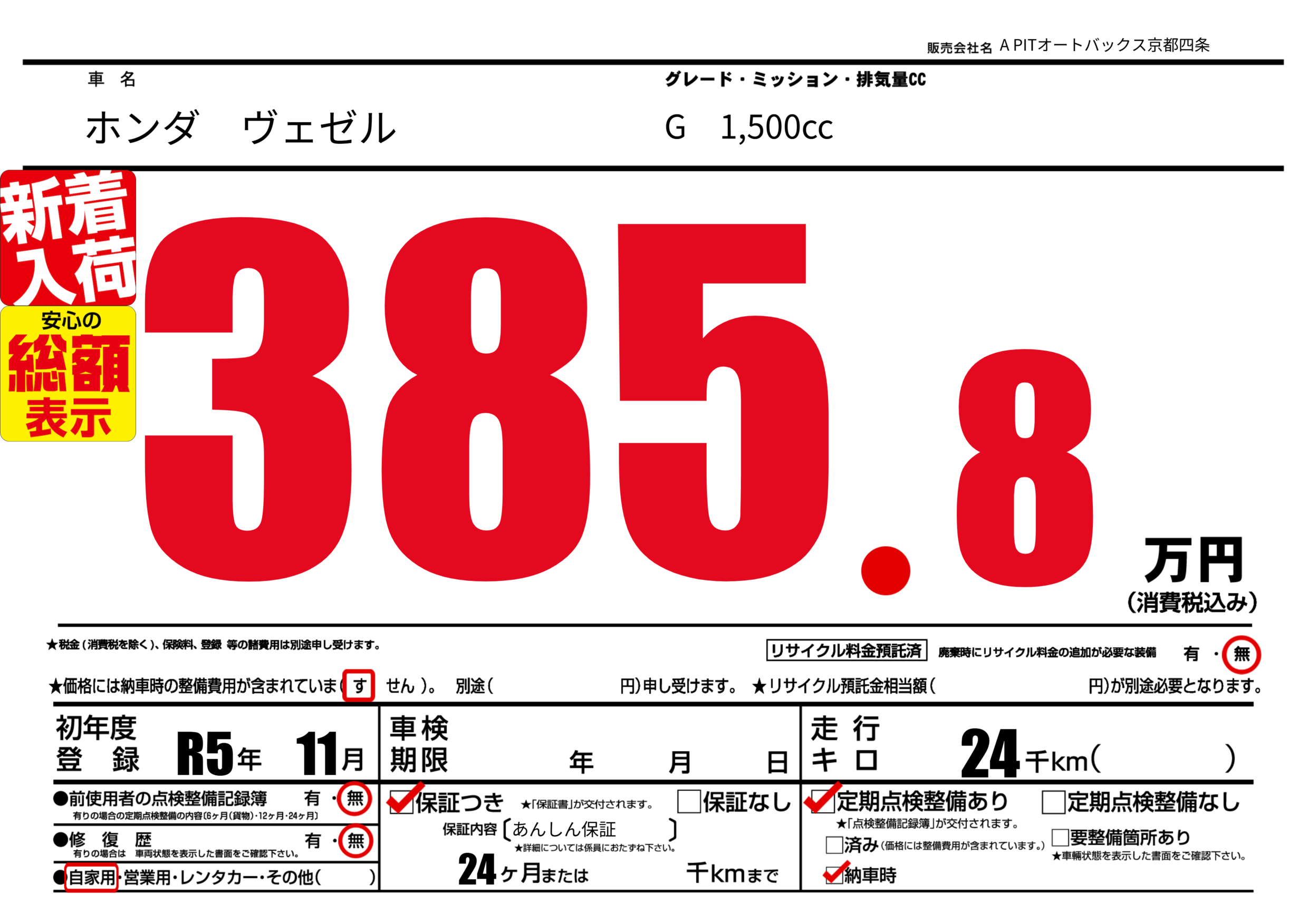 | 車名 | ホンダ ヴェゼル | グレード ミッション 排気量 |