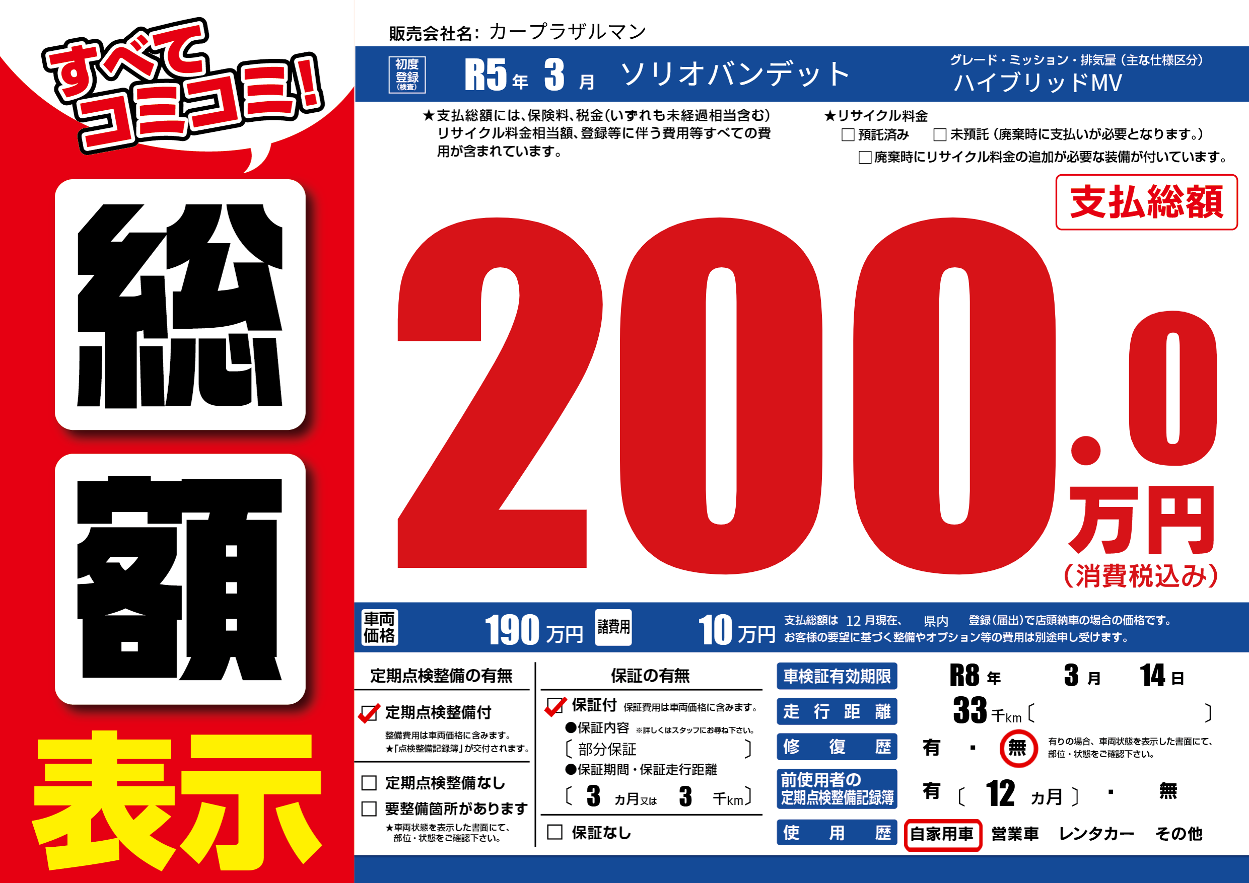 | 車名 | ソリオバンデット | グレード ミッション 排気量 |