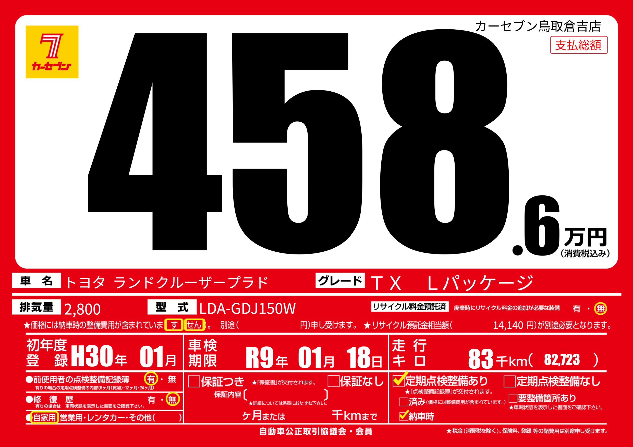 | 走行キロ | 8.3万km | ||