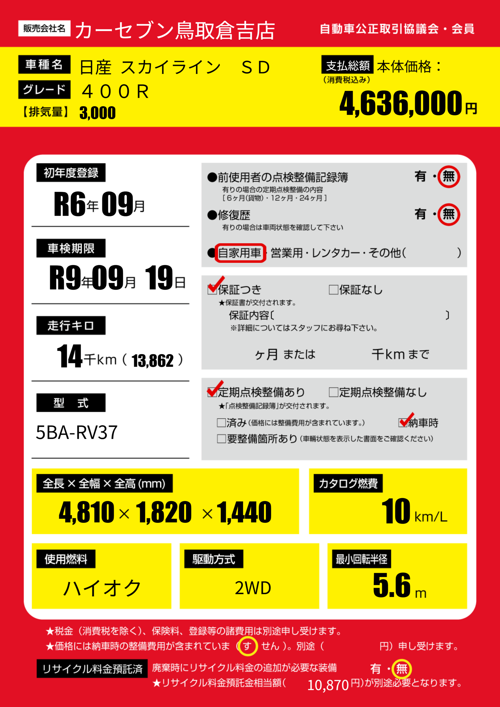 | 定期点検整備 | 定期点検整備あり 納車時あり | ||