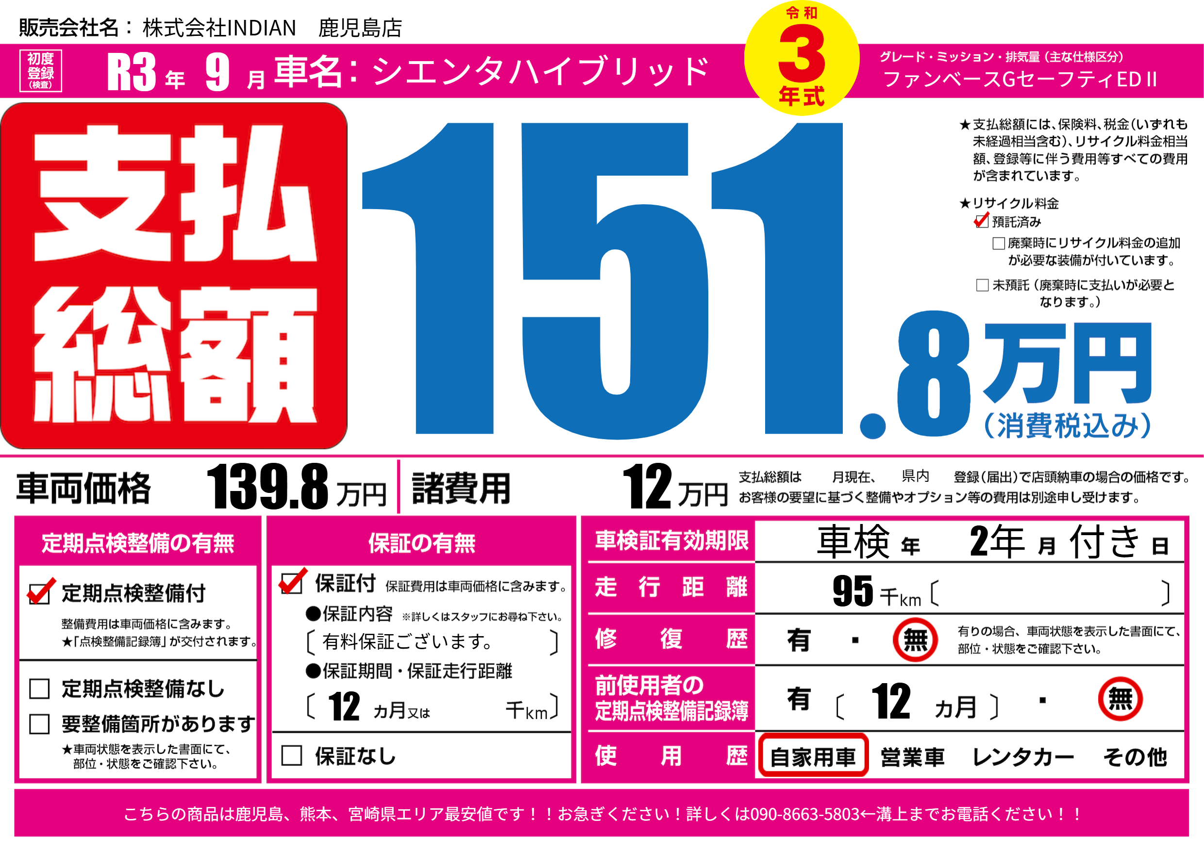 | 初年度登録 | R3年9月 | ||