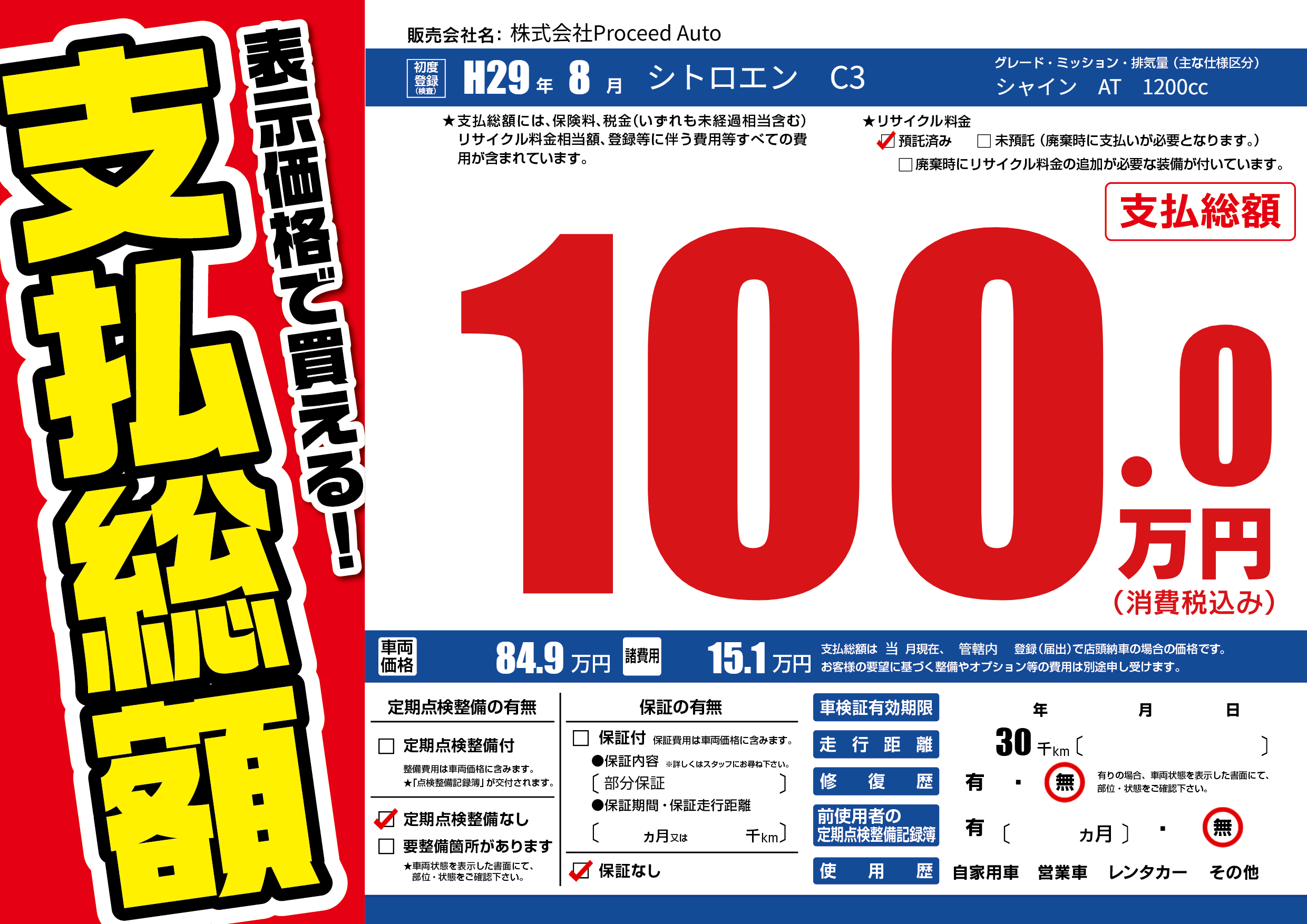 | 車名 | シトロエン C3 | グレード ミッション 排気量 |