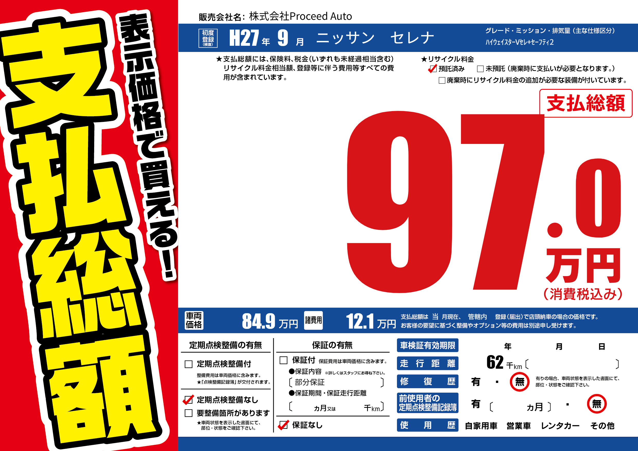 | 車検制限 | - 年 - 月 - 日 | ||