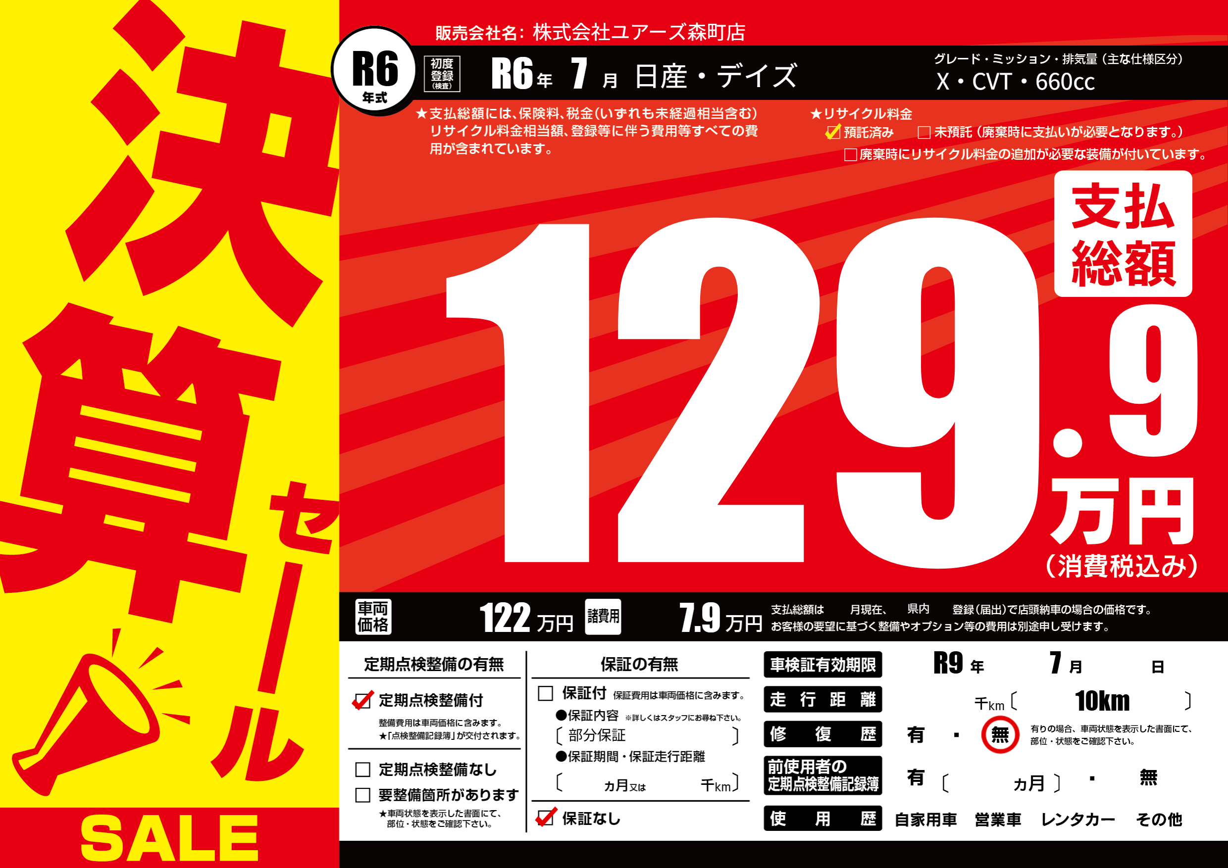 | 走行キロ | - | 初年度登録 | R6年7月 |