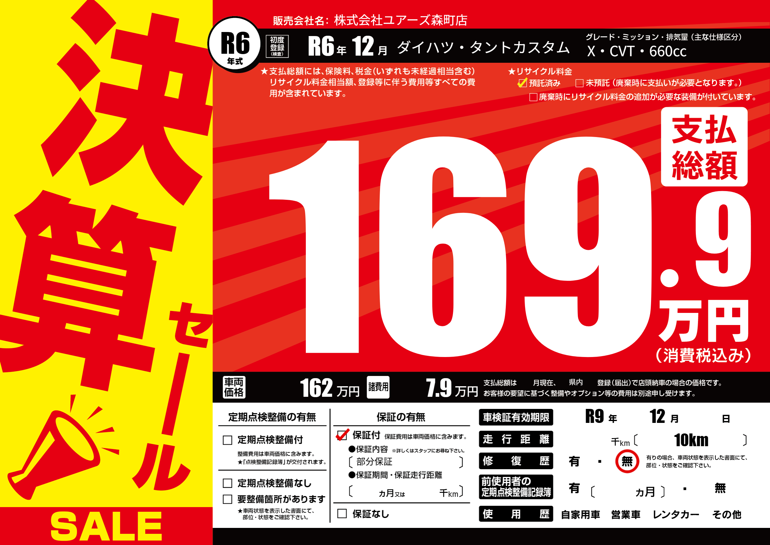 | 走行キロ | - | 初年度登録 | R6年12月 |