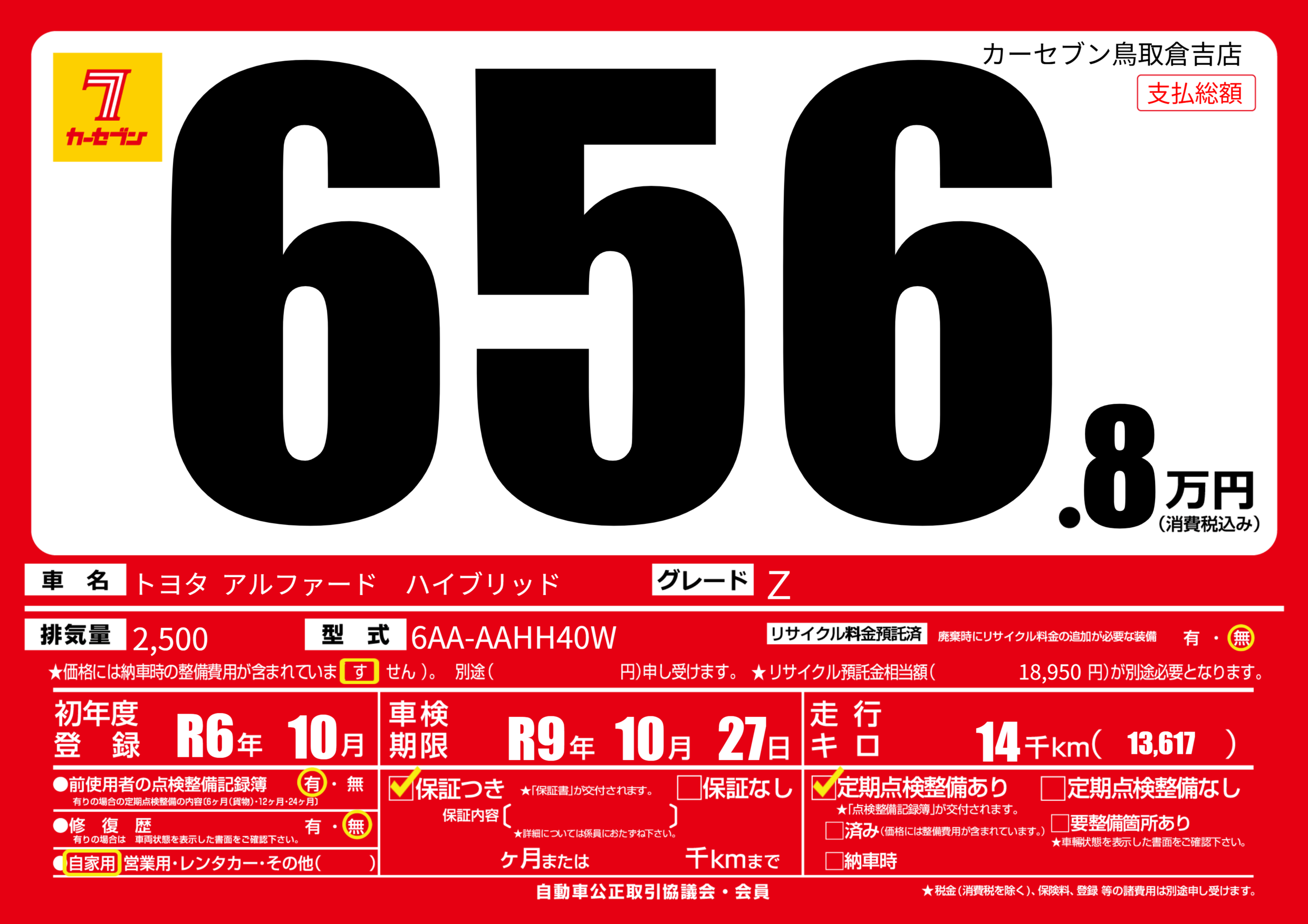 | 初年度登録 | R6年10月 | ||