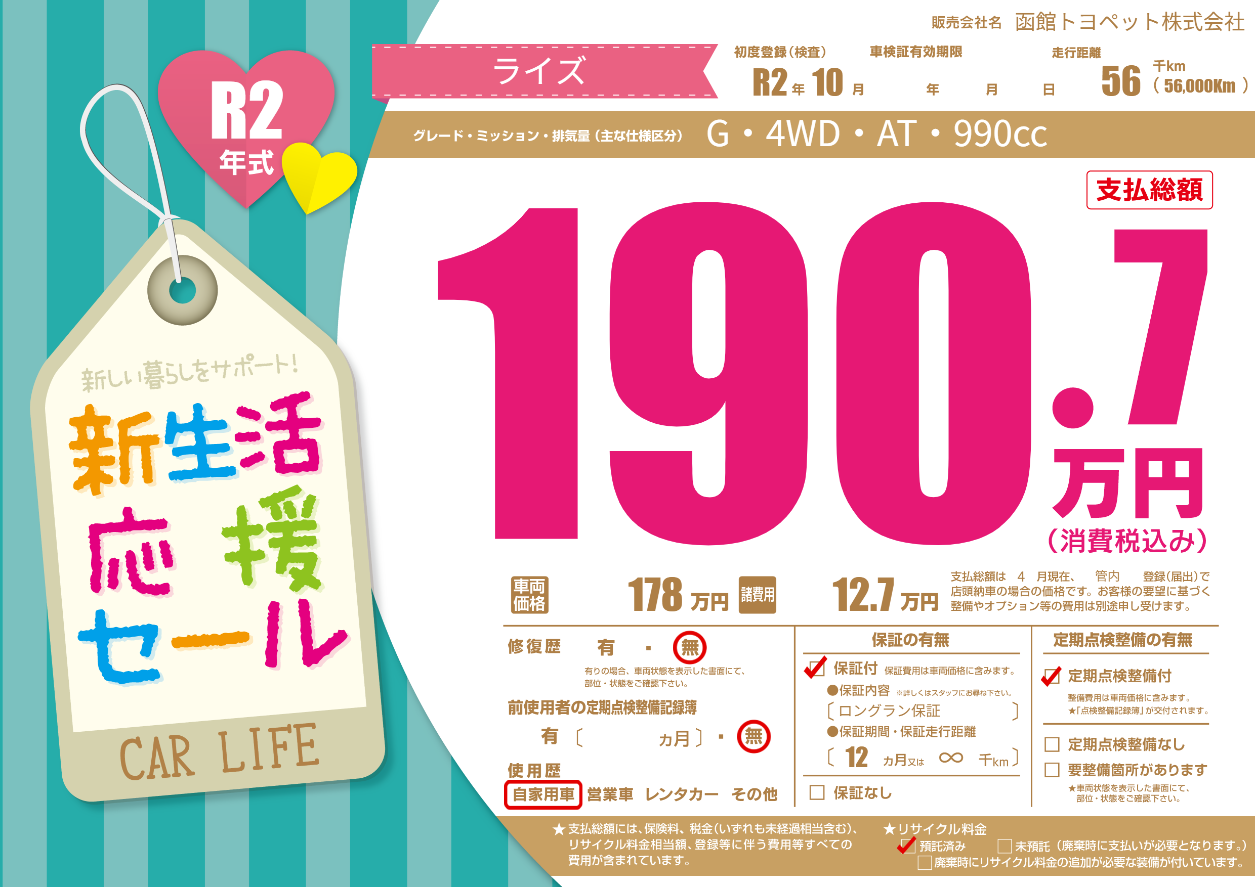 | 初年度登録 | R2年10月 | ||