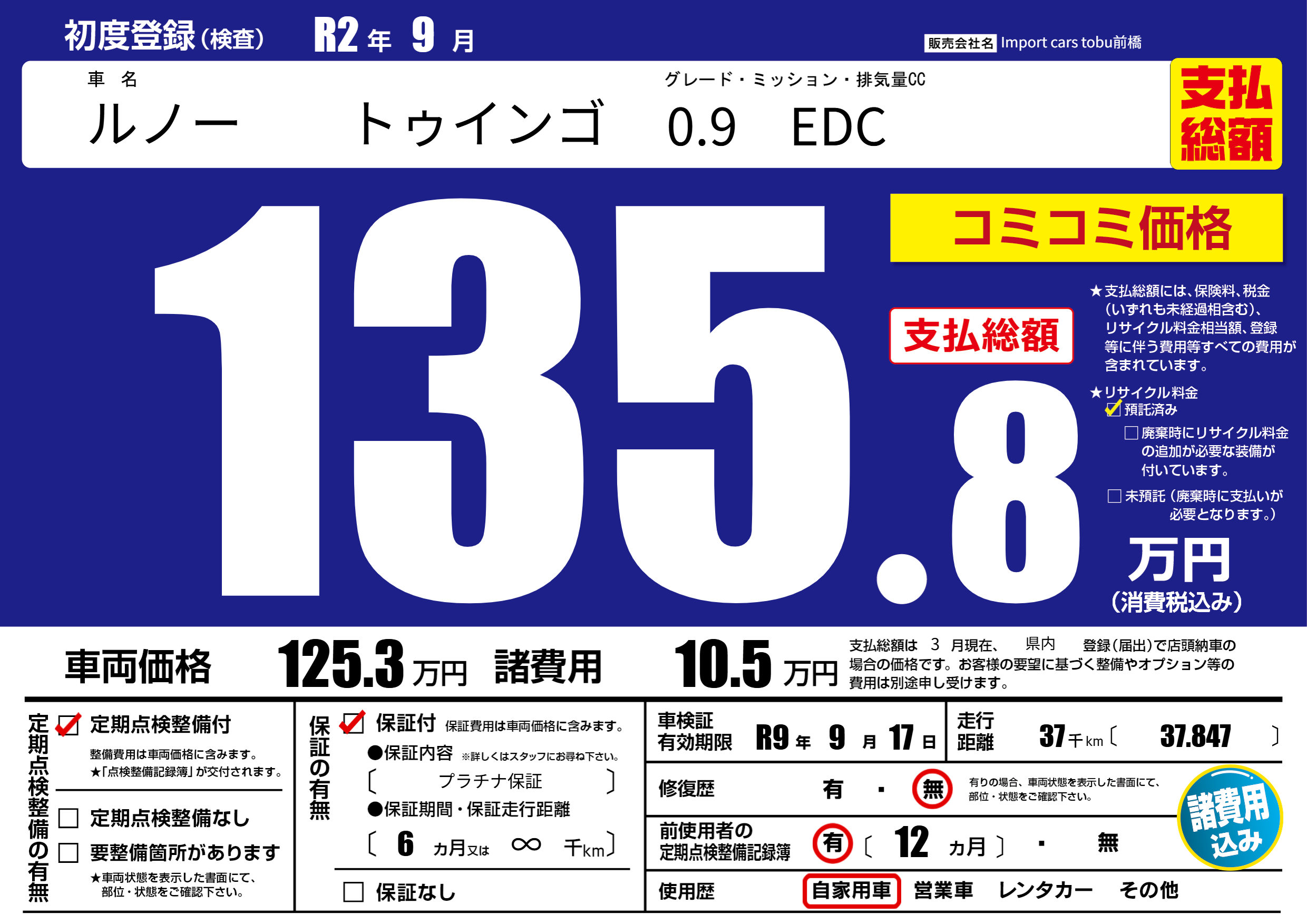 なし | 車検制限 | R9年9月17月 |