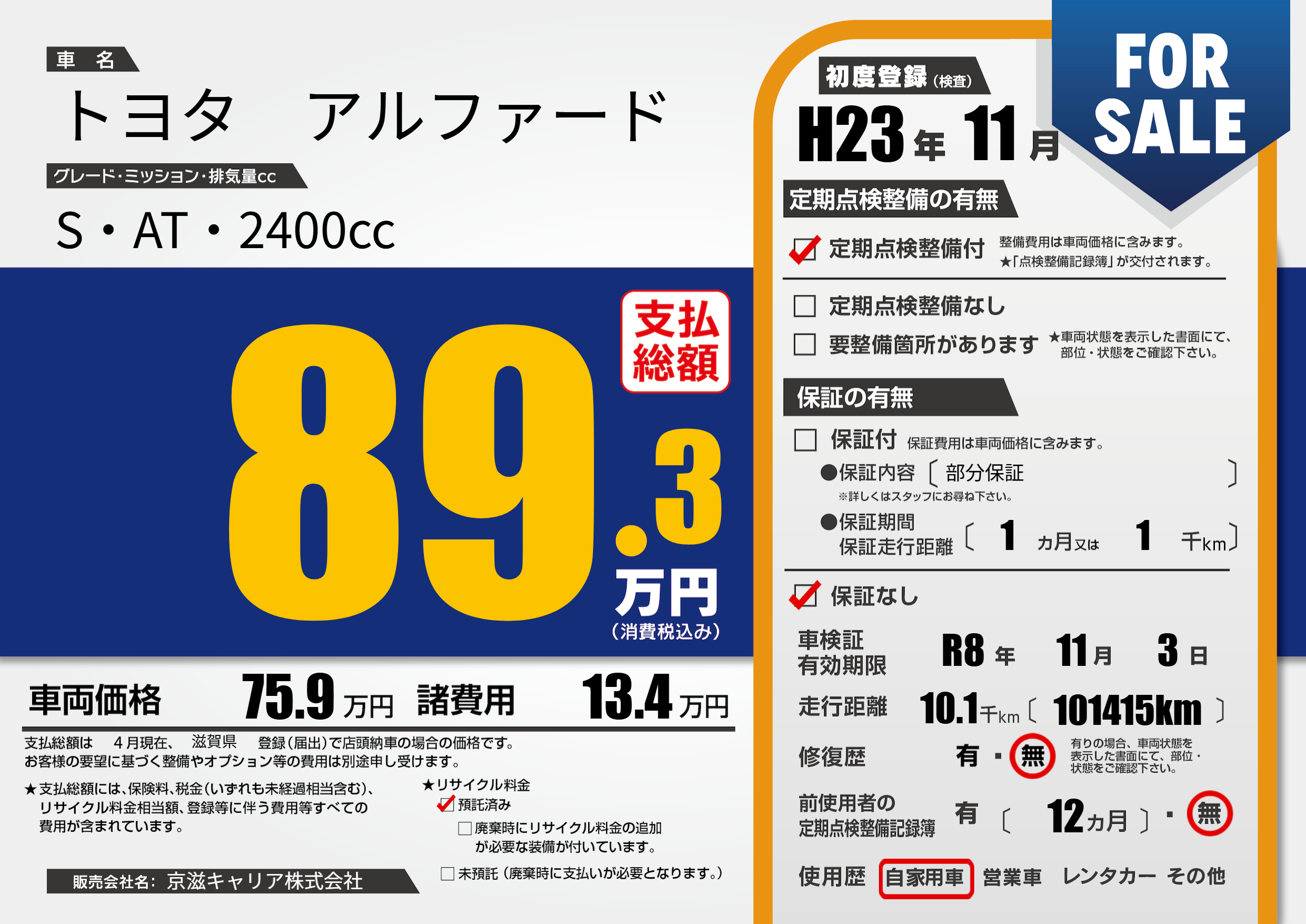 なし | 車検制限 | R8年11月3月 |