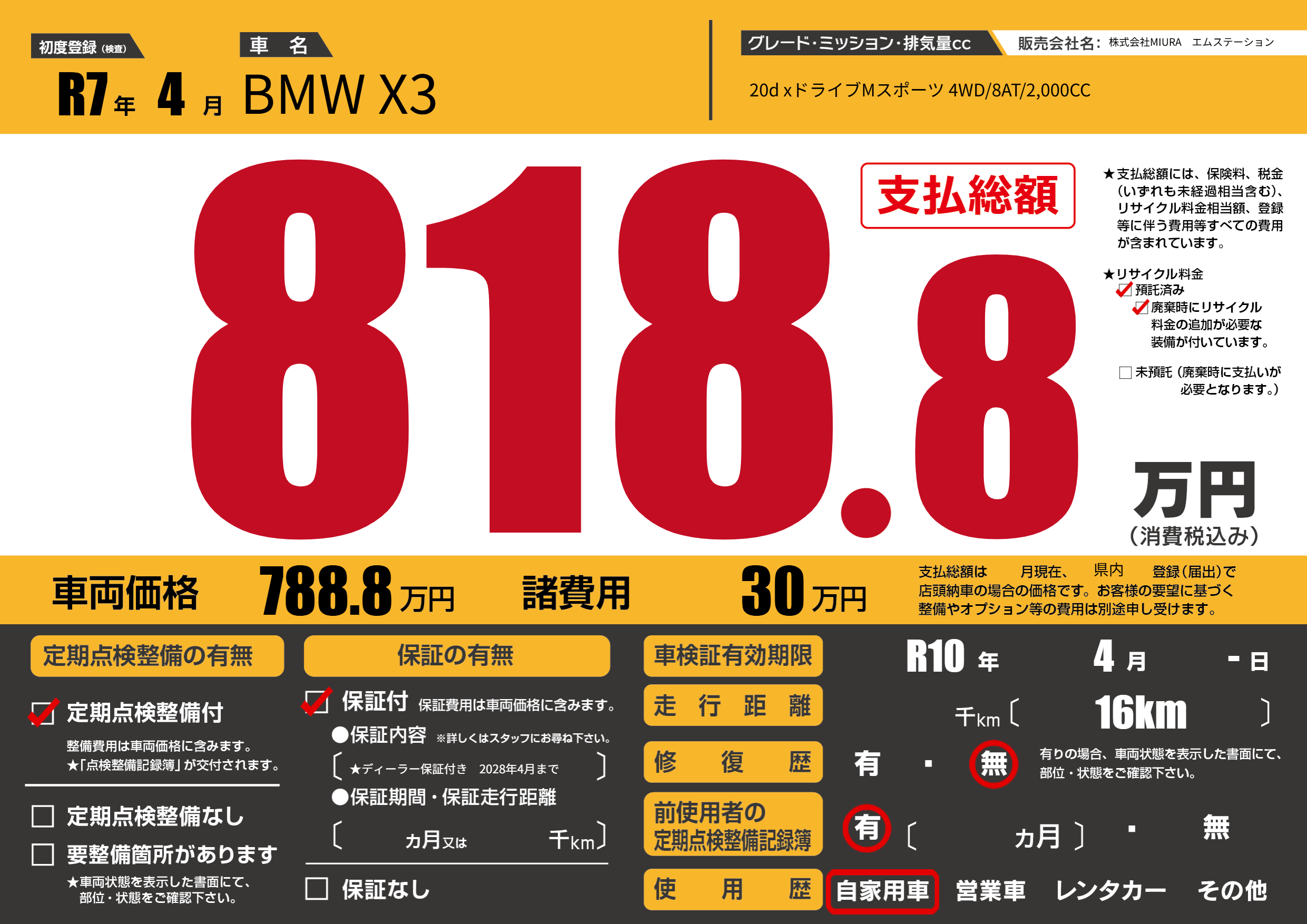 | 車検制限 | R10年 4月 -日 | ||