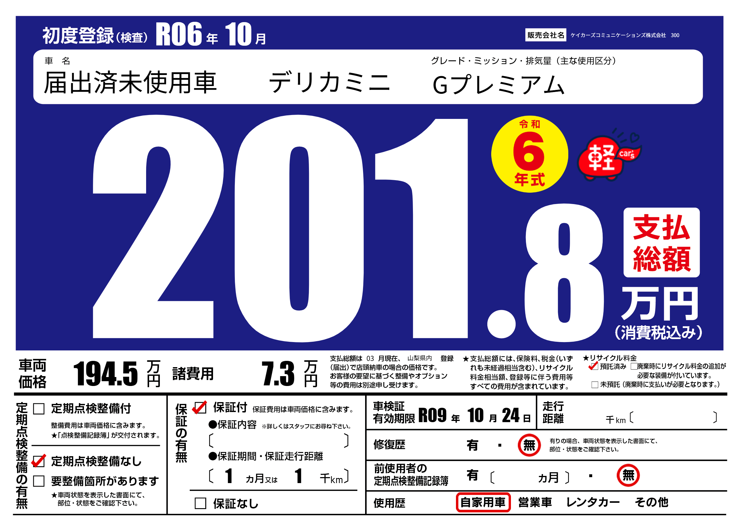 なし | 車検制限 | R09年10月24月 |