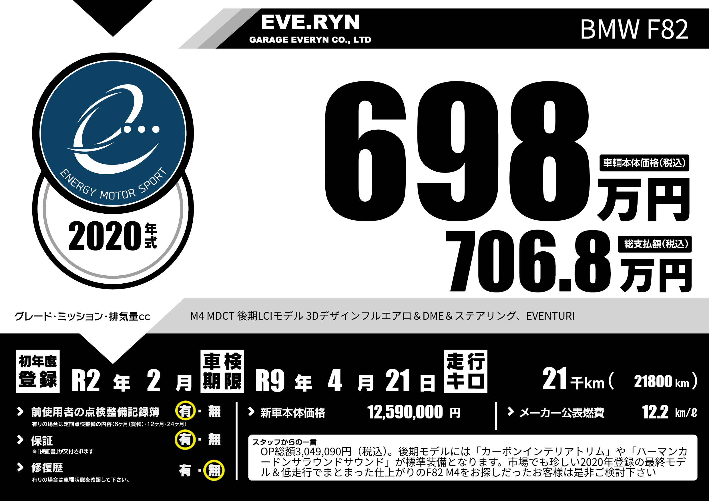 | 車名 | BMW F82 | グレード ミッション 排気量 |