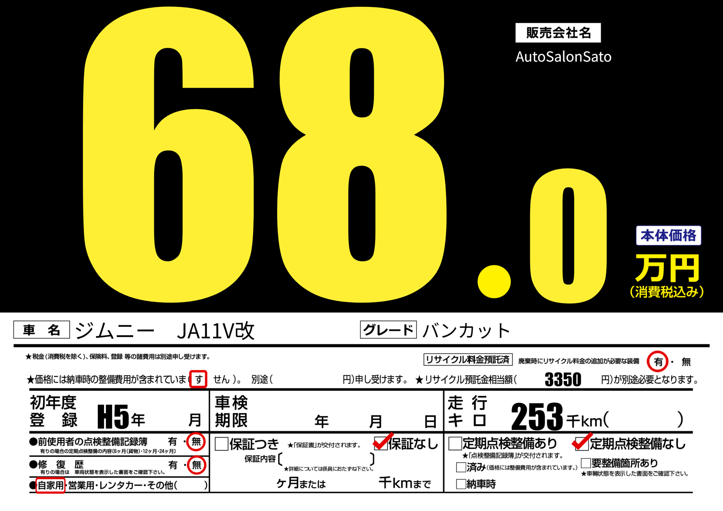 あり | リサイクル預託金相当額 | ( 3350円)が別途必要 |