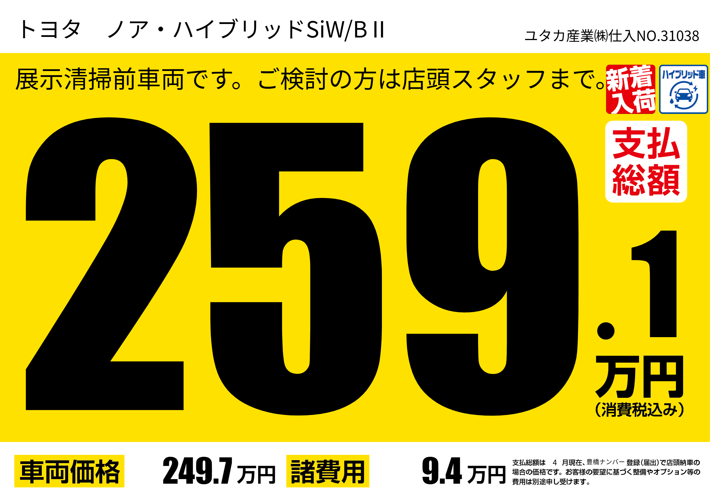 | 車名 | トヨタ ノア・ハイブリッドSiW/BⅡ | グレード ミッション 排気量 |
