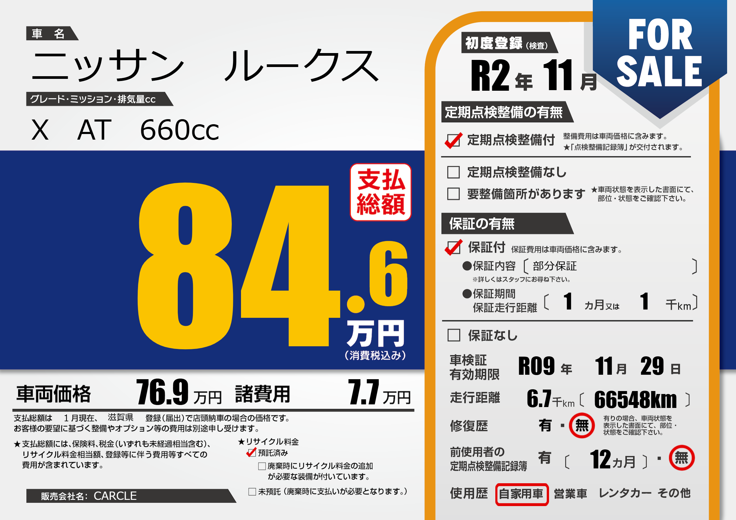 なし | 車検制限 | R09年11月29月 |