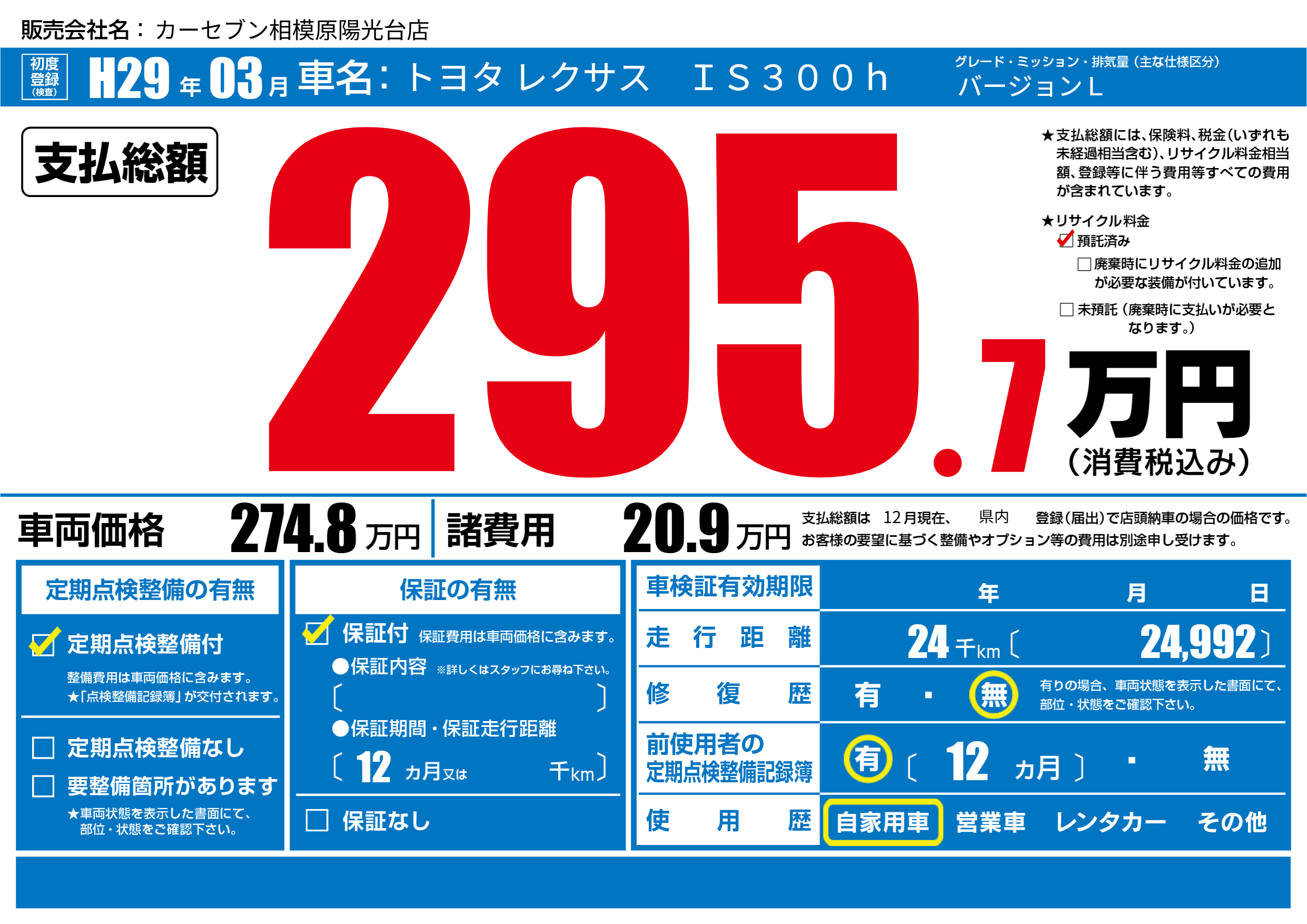 | リサイクル料金 預託済 |