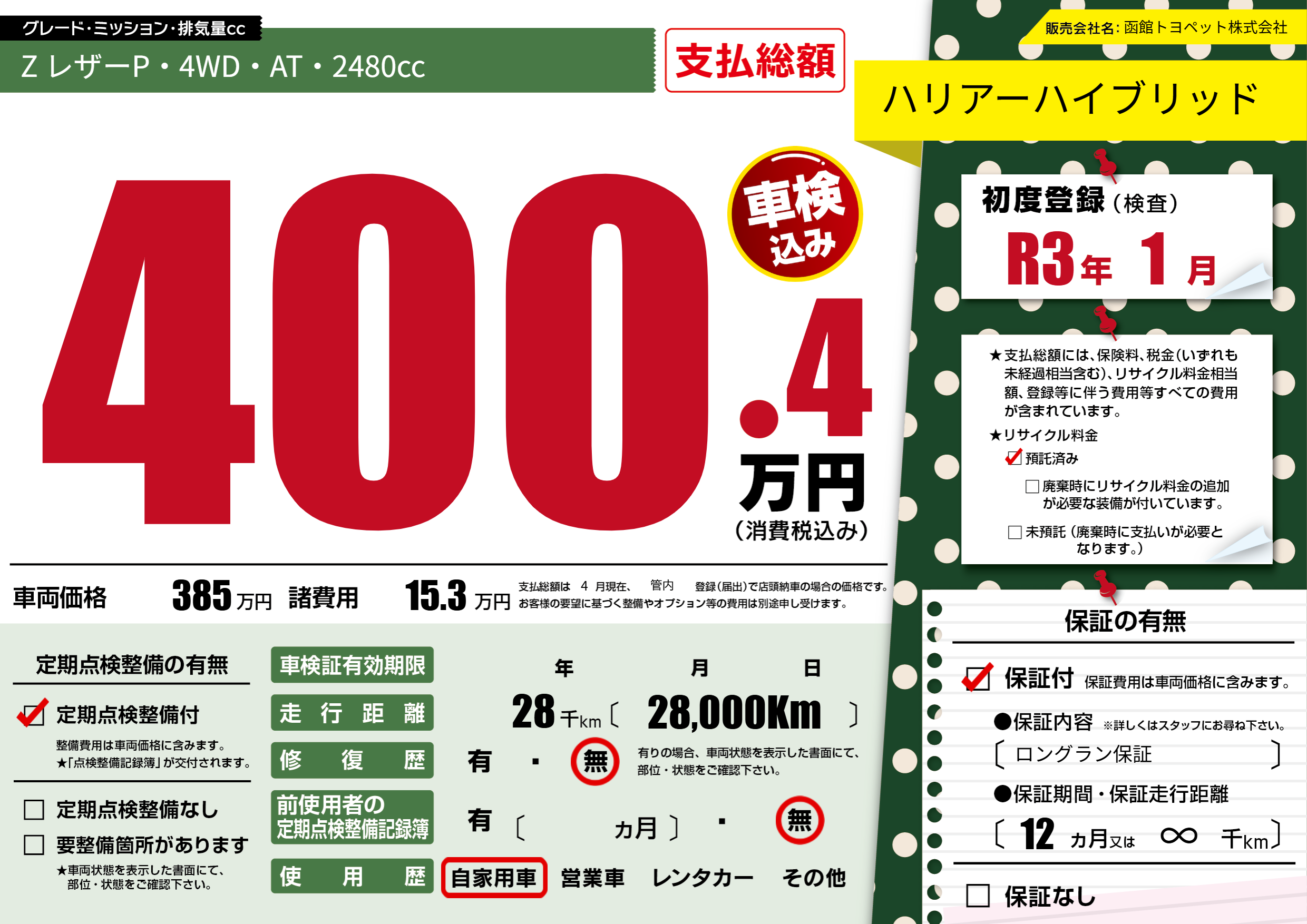 | 初年度登録 | R3年1月 | ||