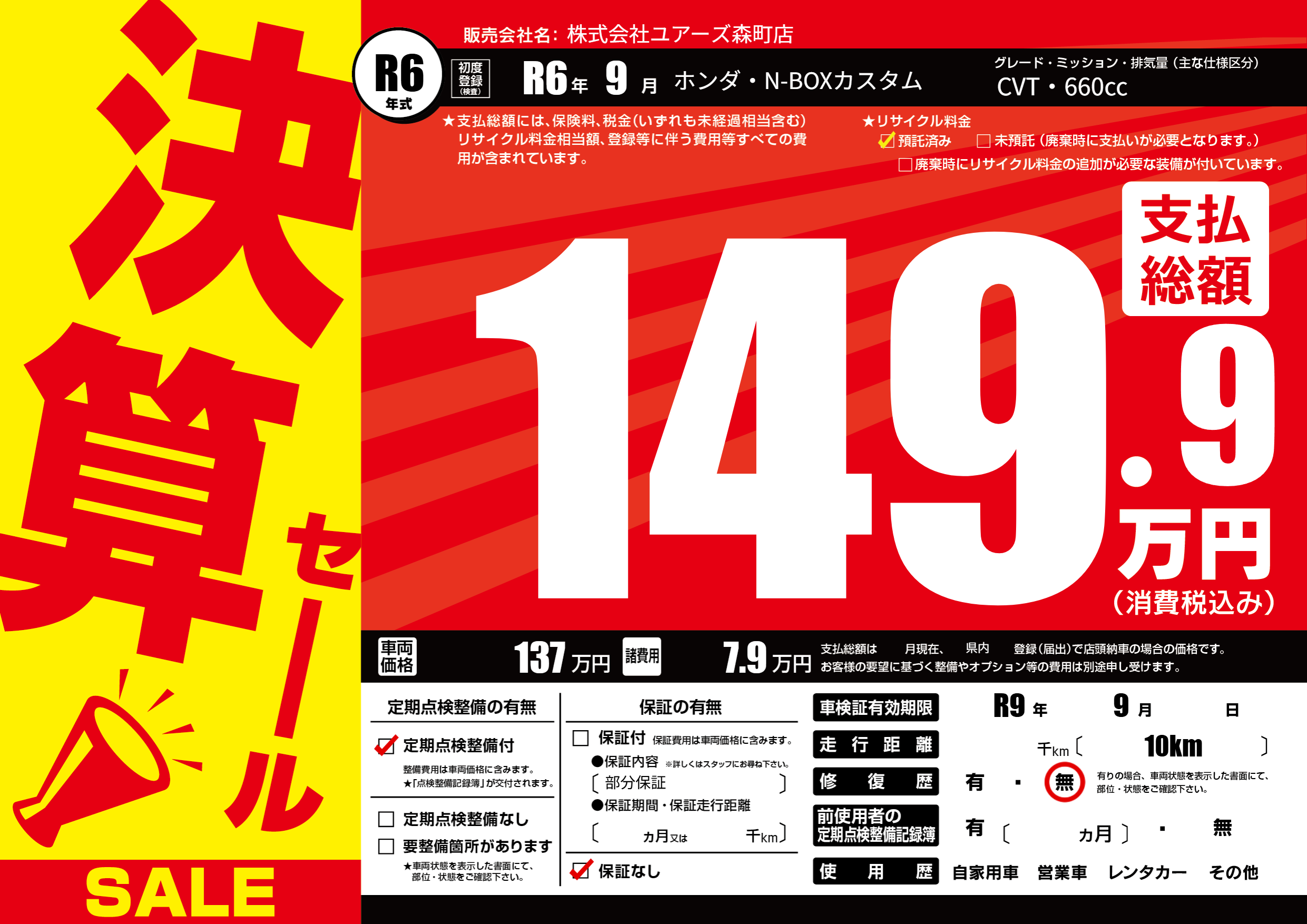 なし | 車検制限 | R9年9月---月 |