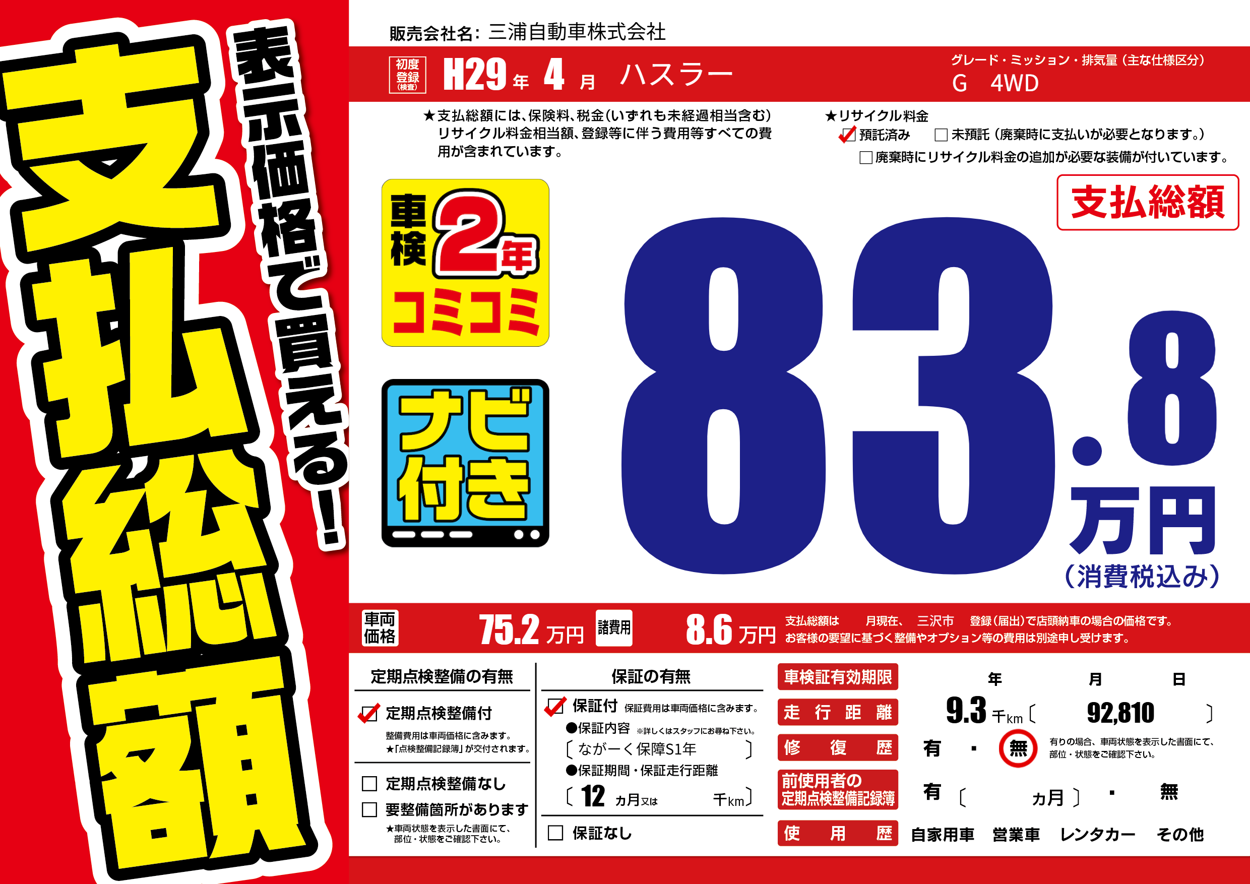 | 定期点検整備 | 定期点検整備あり | ||