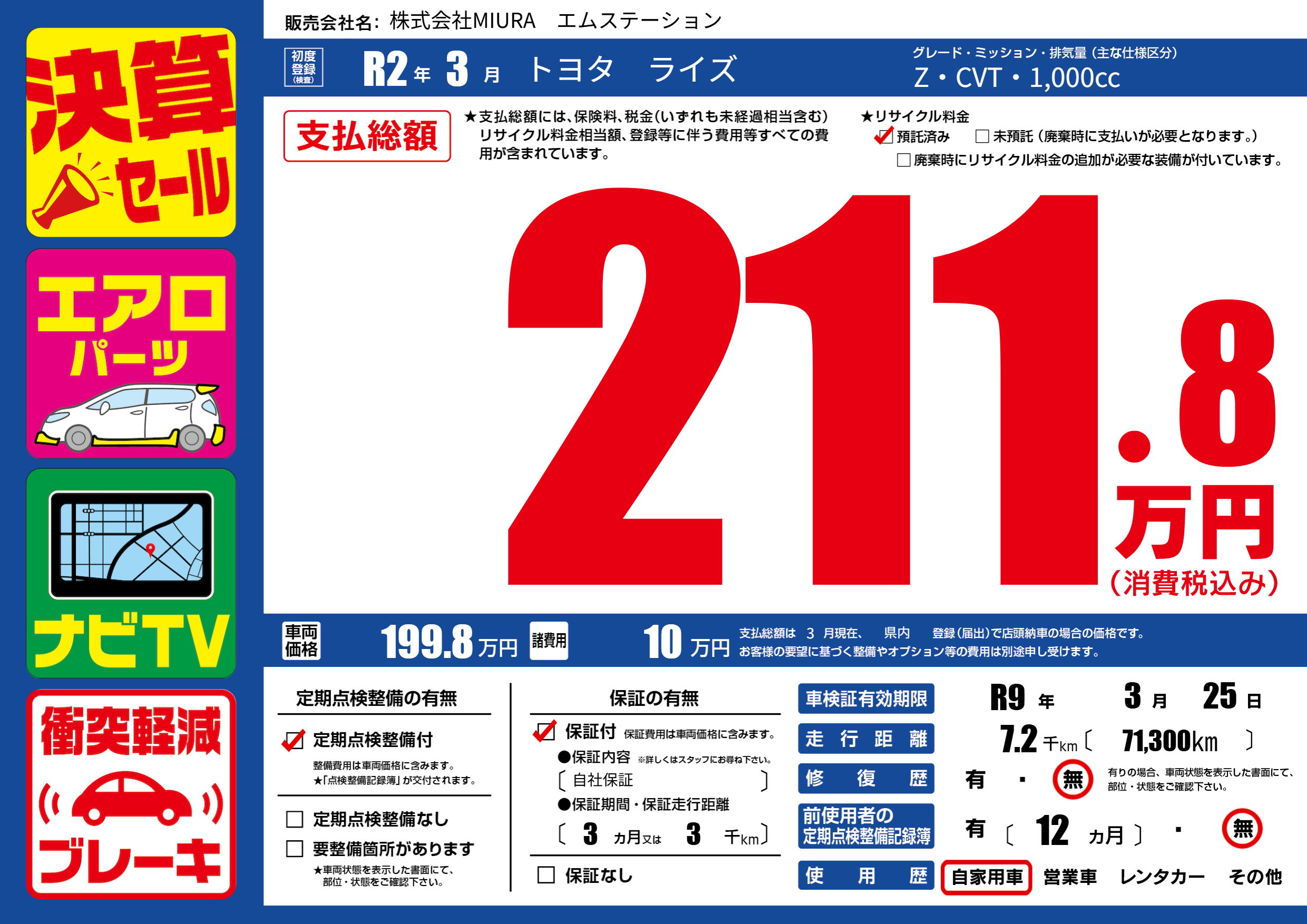 | 車検制限 | R9年 3月 25日 | ||