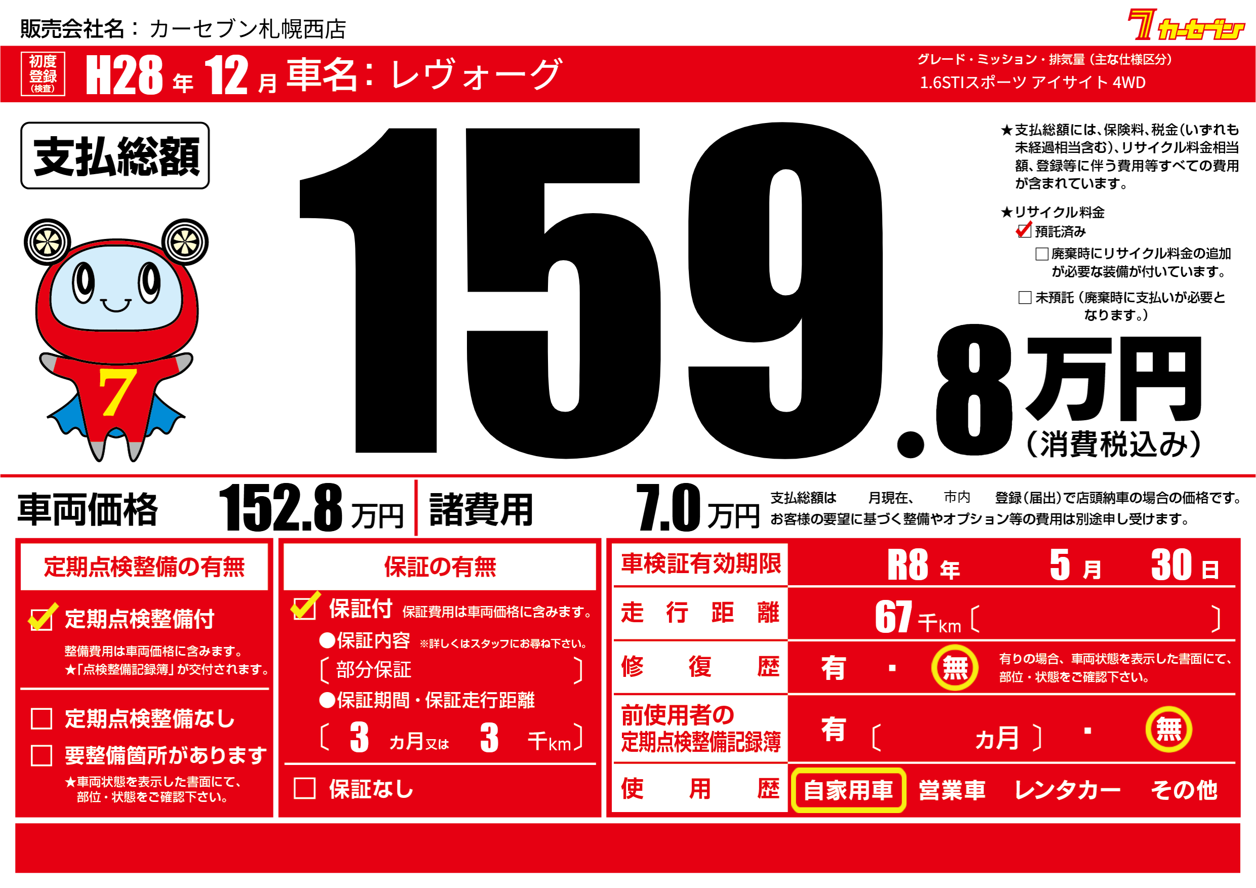 | 車検制限 | R8年 5月 30日 | ||