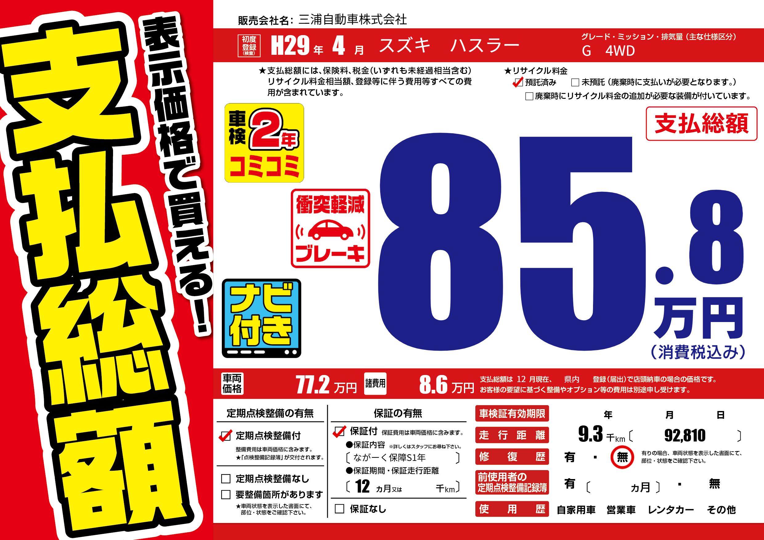 | 車検制限 | - 年 - 月 - 日 | ||