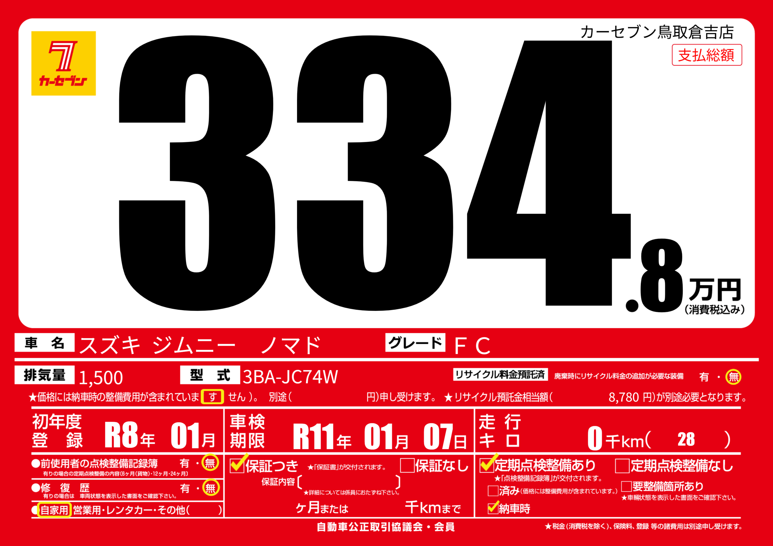 | 車検制限 | R11年 01月 07日 | ||