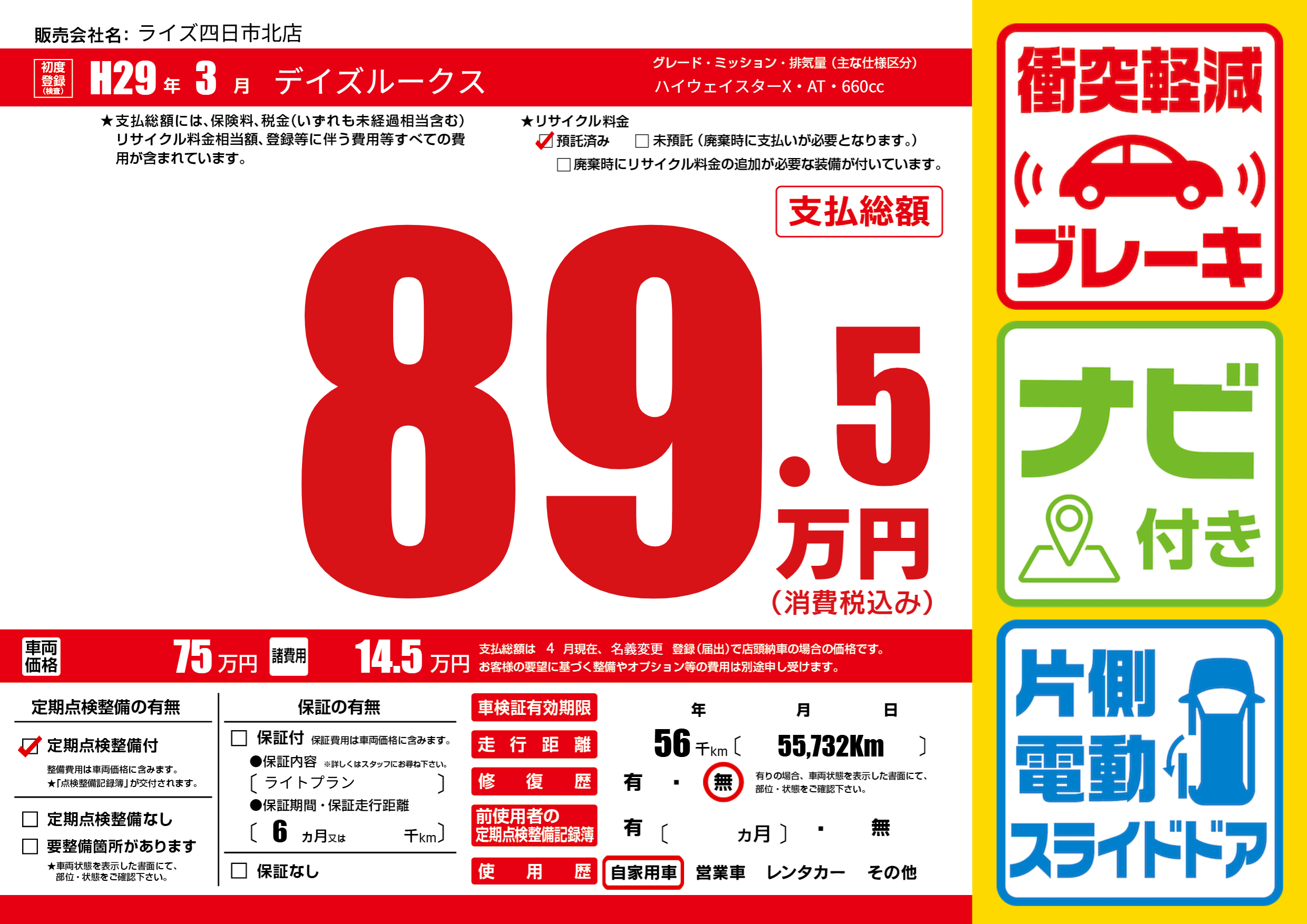 | 初年度登録 | H29年3月 | ||
