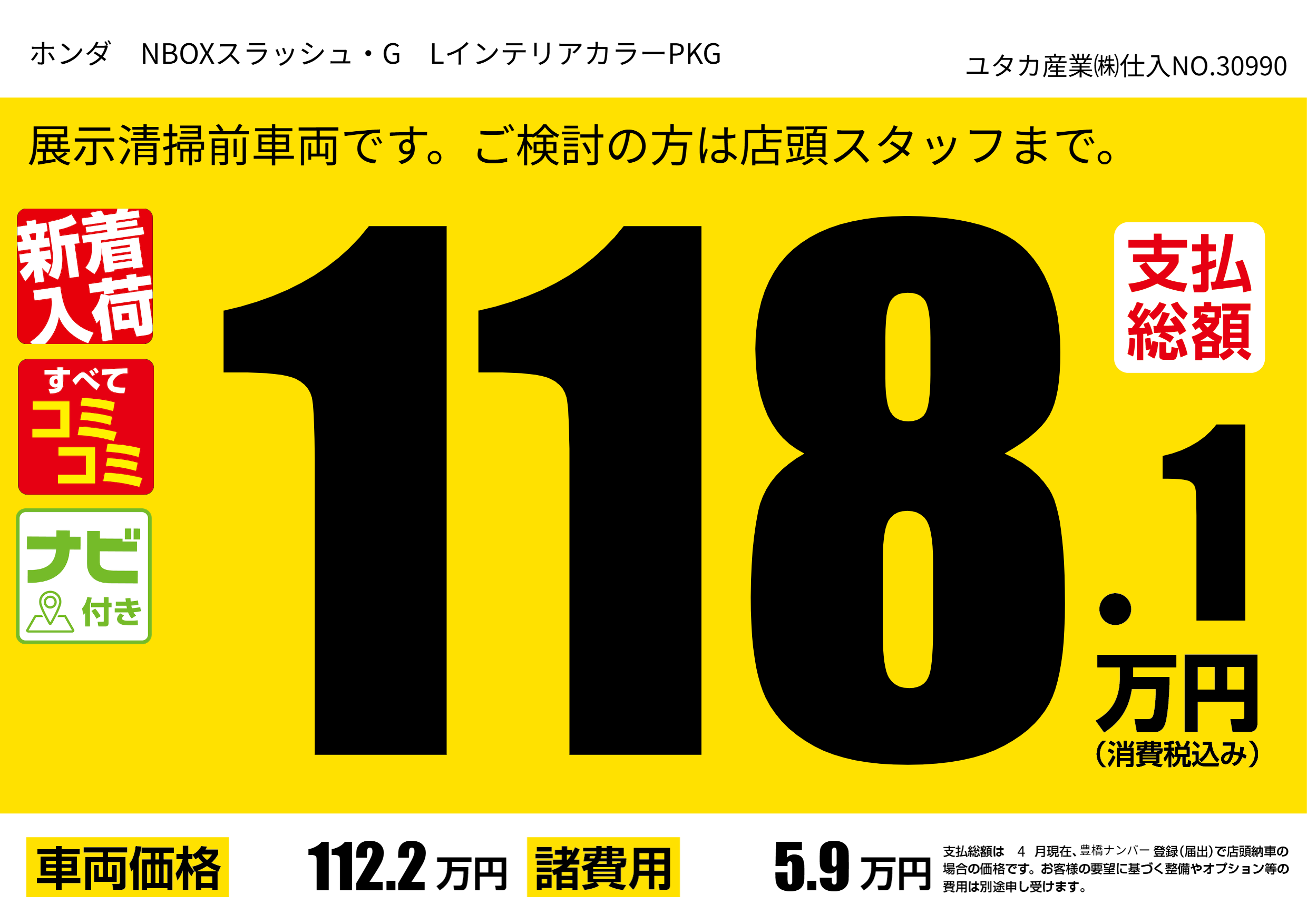 | 車名 | ホンダ NBOXスラッシュ・G LインテリアカラーPKG | グレード ミッション 排気量 |