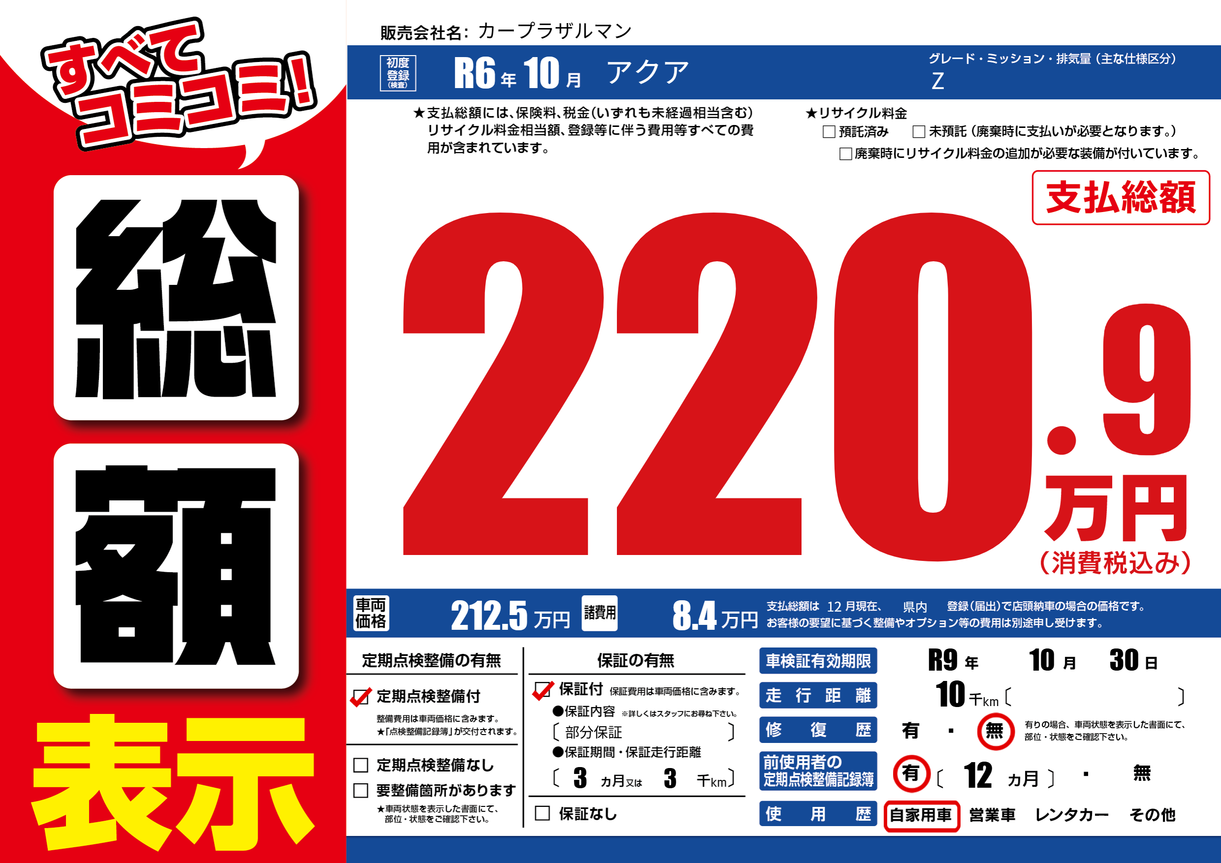 なし | 車検制限 | R9年10月30月 |