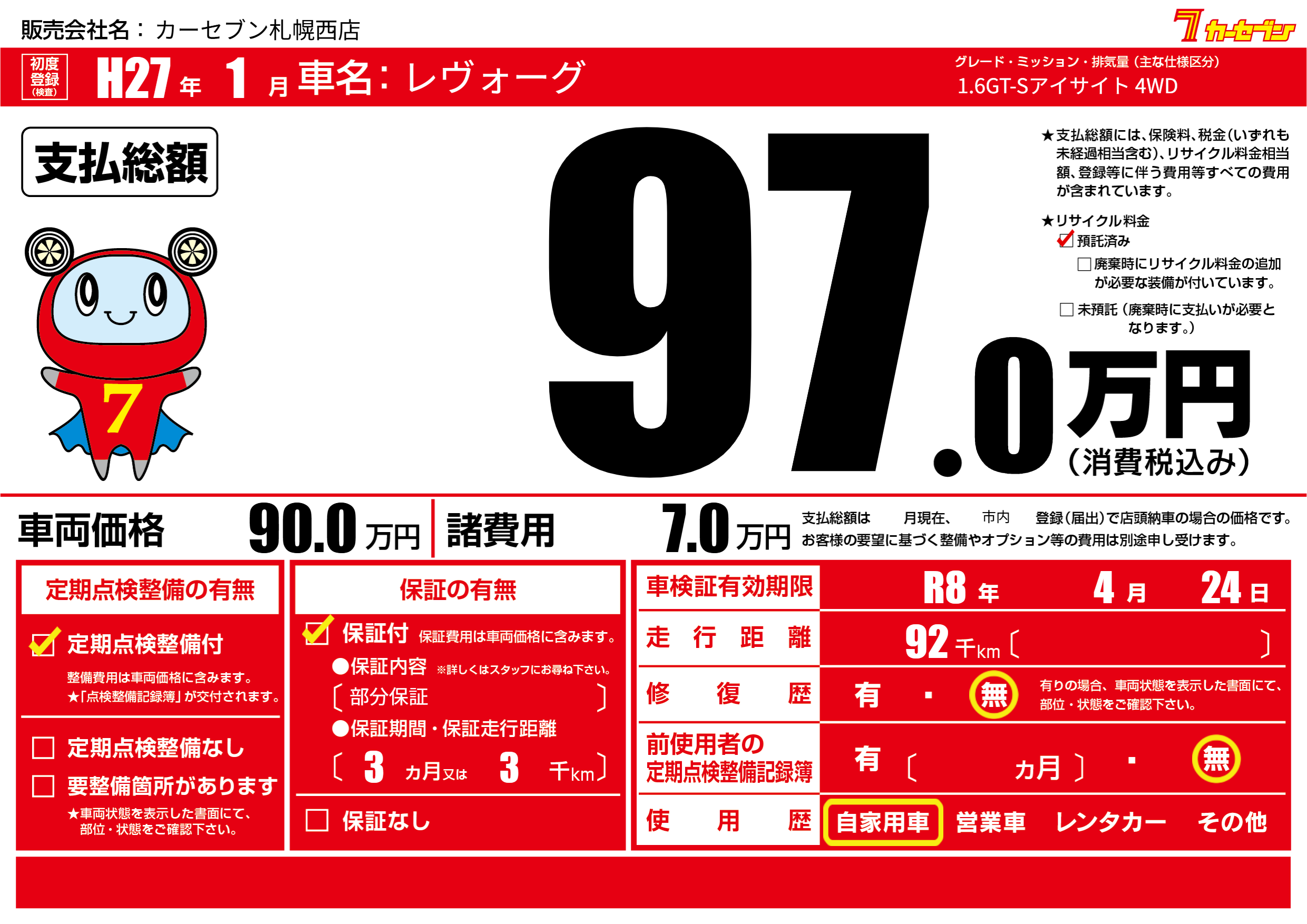なし | 車検制限 | R8年4月24月 |