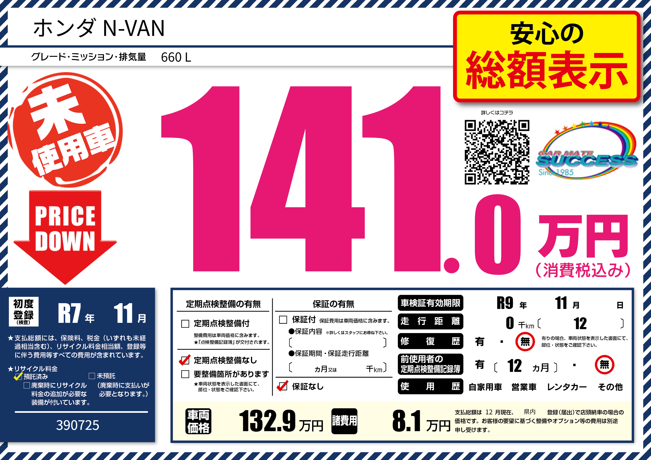 | 初年度登録 | R7年11月 | ||