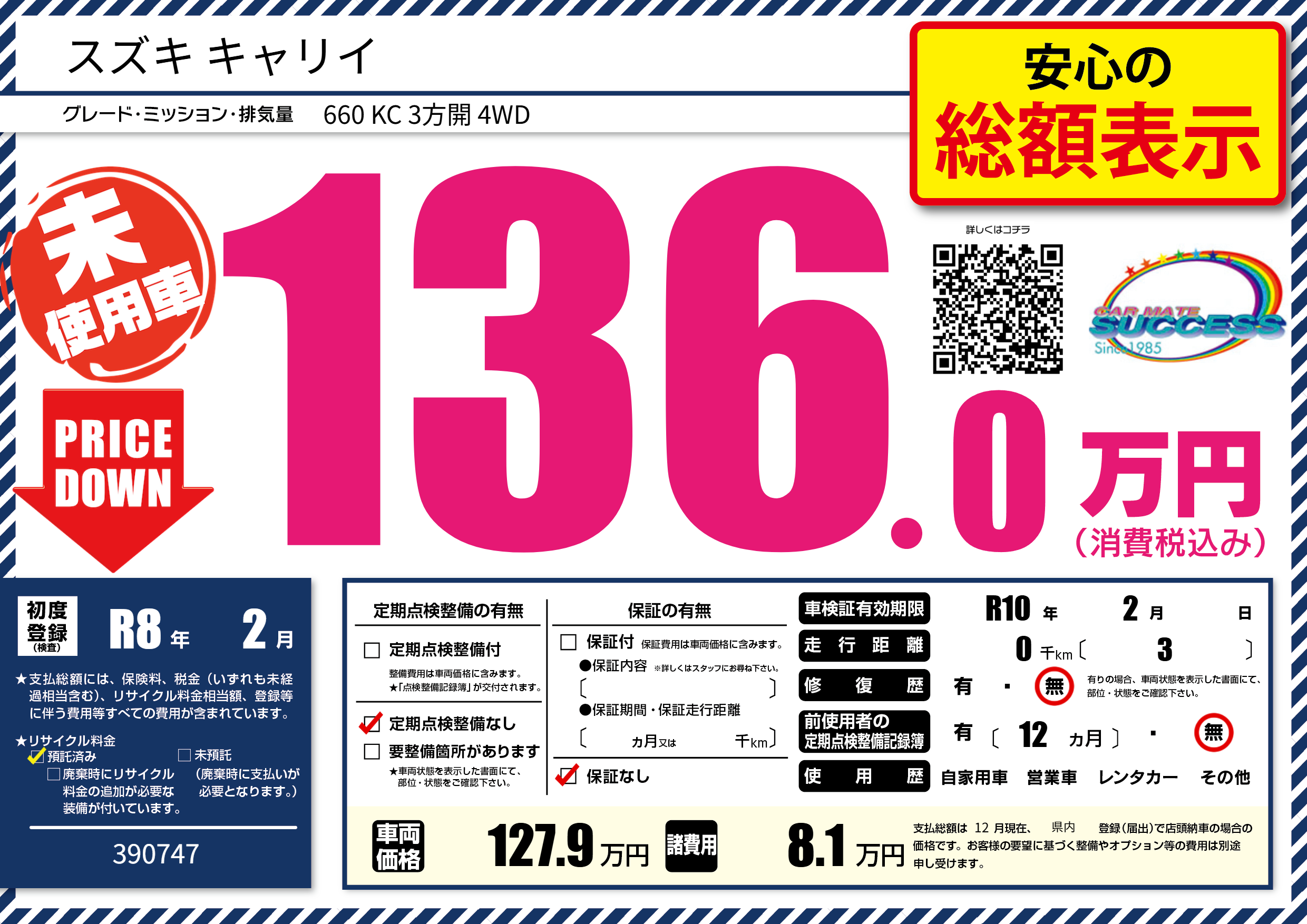 | 走行キロ | - | 初年度登録 | R8年2月 |