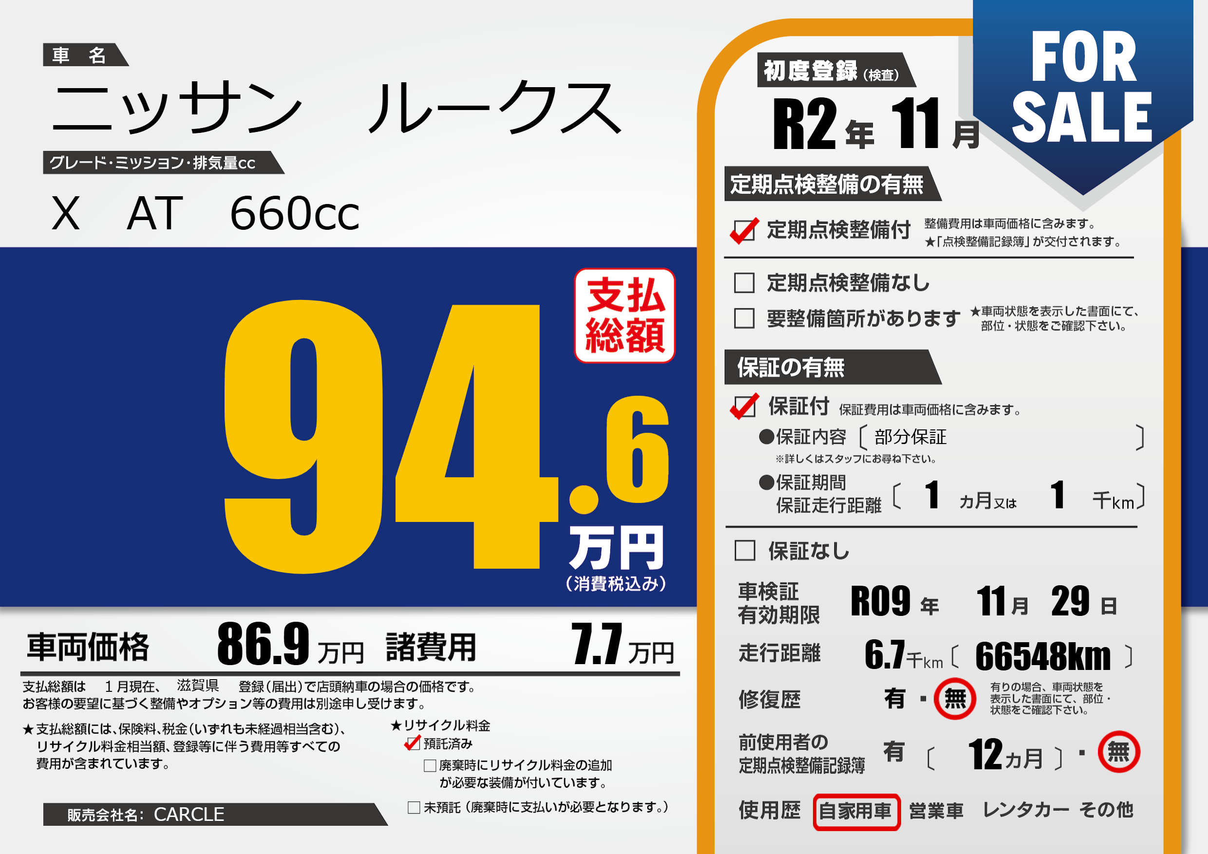 なし | 車検制限 | R09年11月29月 |