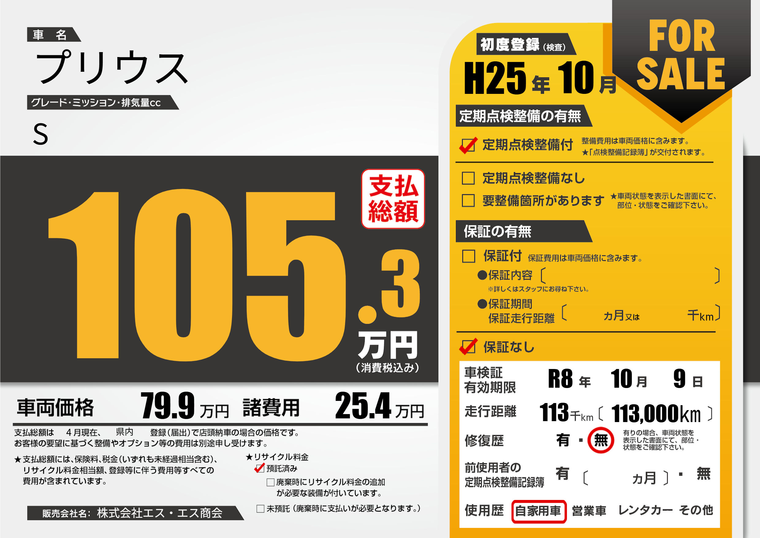 なし | 車検制限 | R8年10月9月 |
